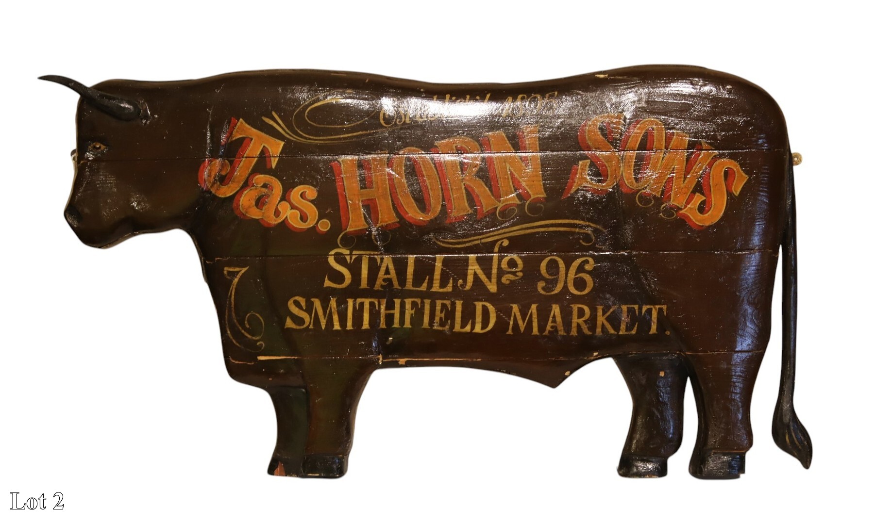 Jas. Horn Sons, wood sign board, in a form of a Bull. ( Width:100 Height:57 )
