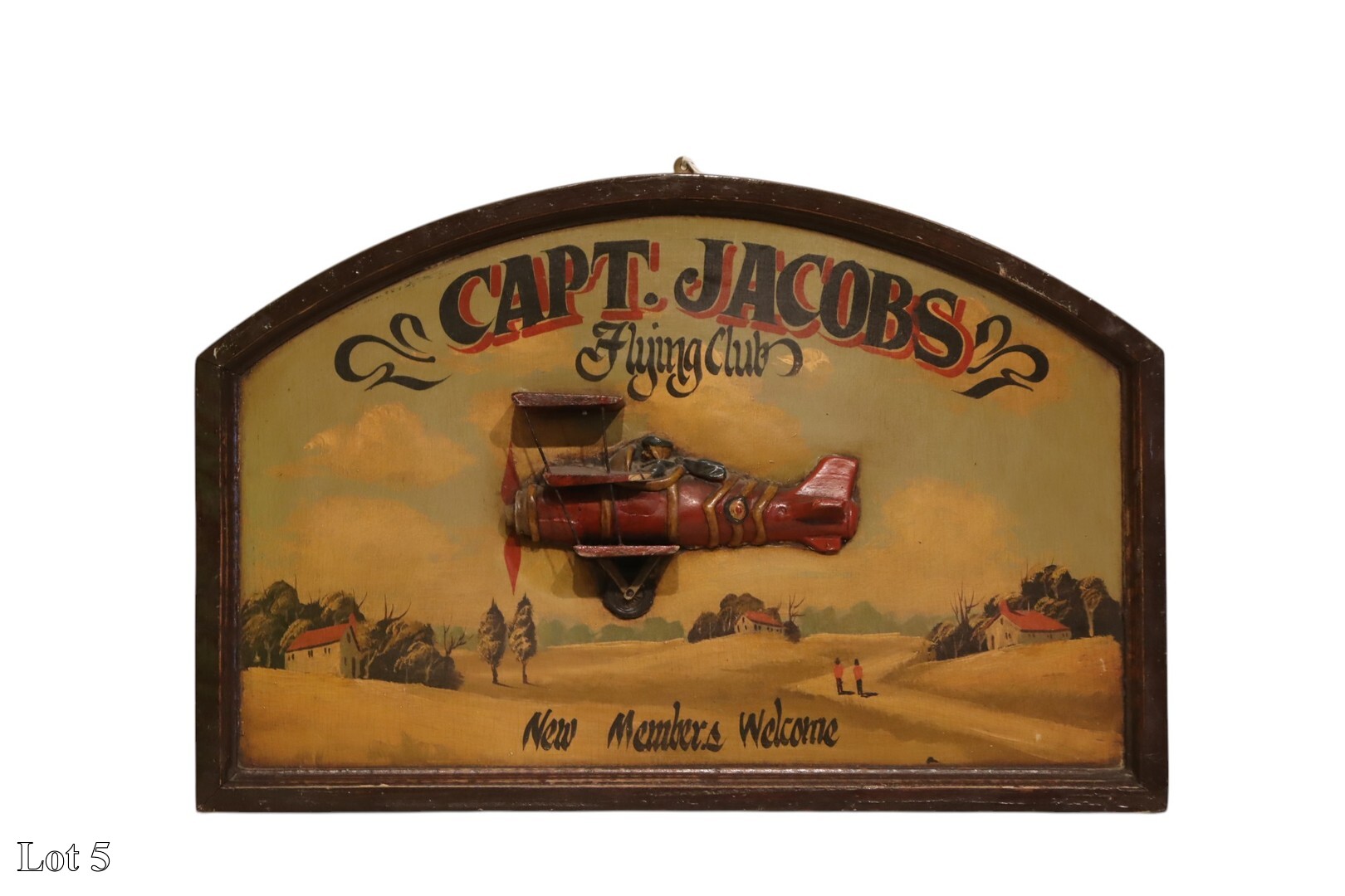Capt. Jacobs Flying Club, painted wooden sign. ( Width:60 Height:40 )
