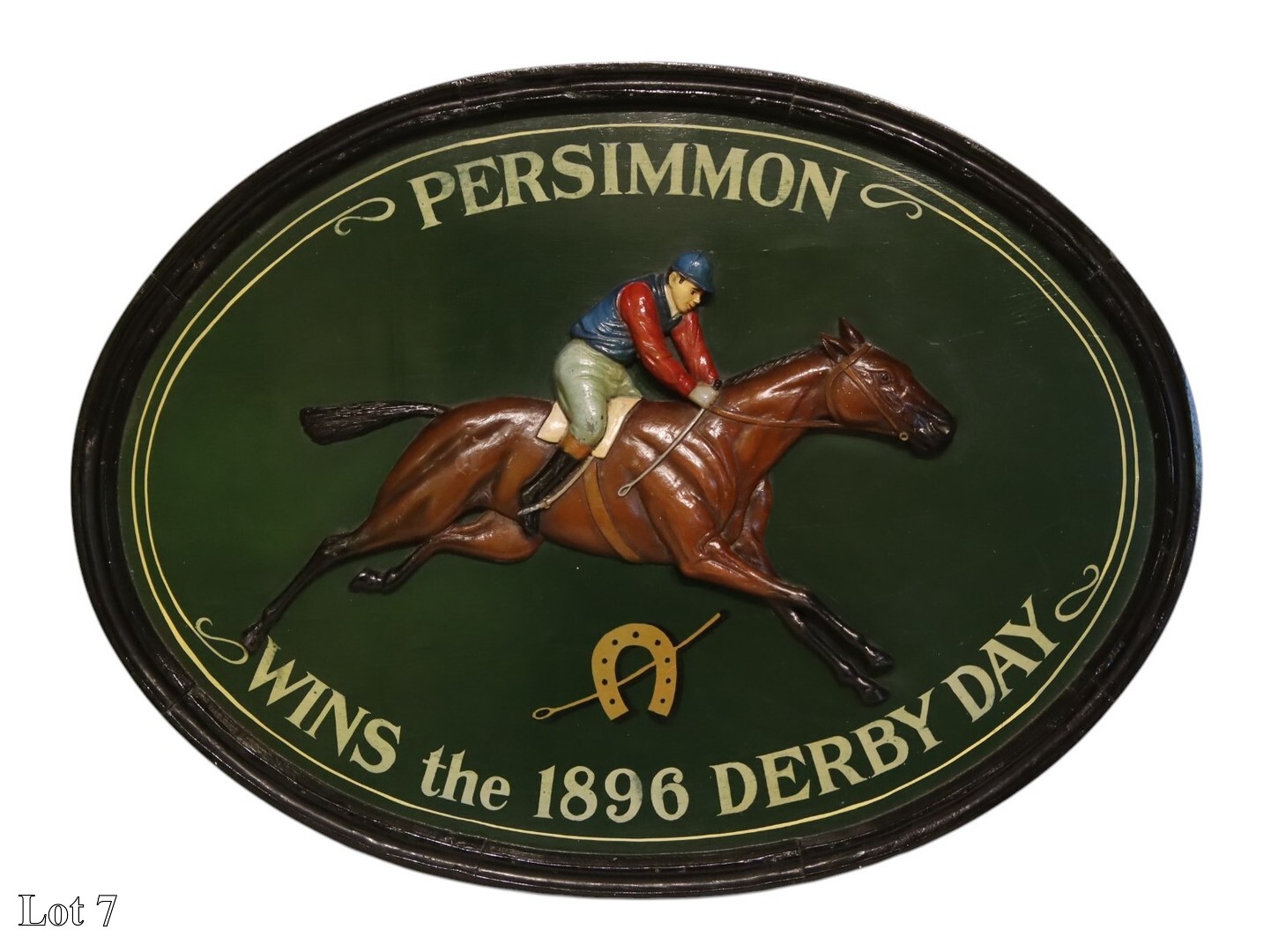 Persimmon Wins the 1896 Derby Day, wooden sign. ( Width:76 Height:56 )