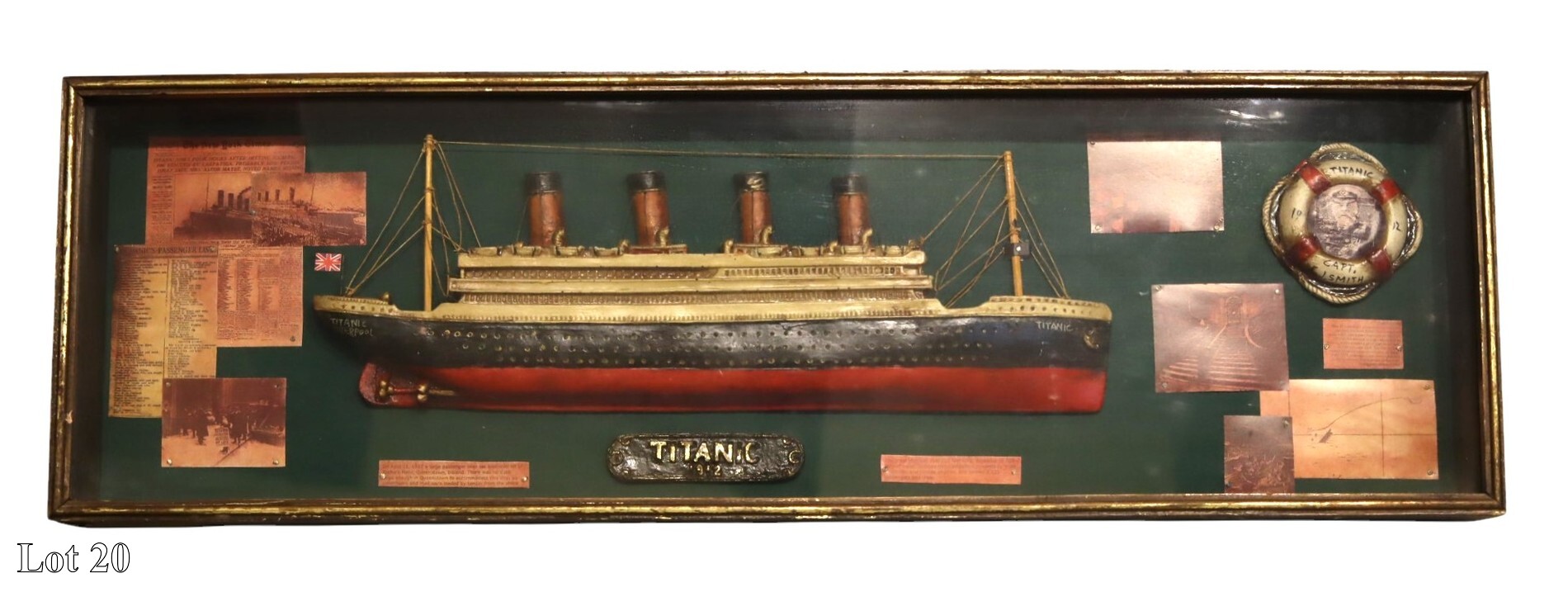 A half model of The Titanic Liner, framed. ( Width:106 Height:33 Depth:10)