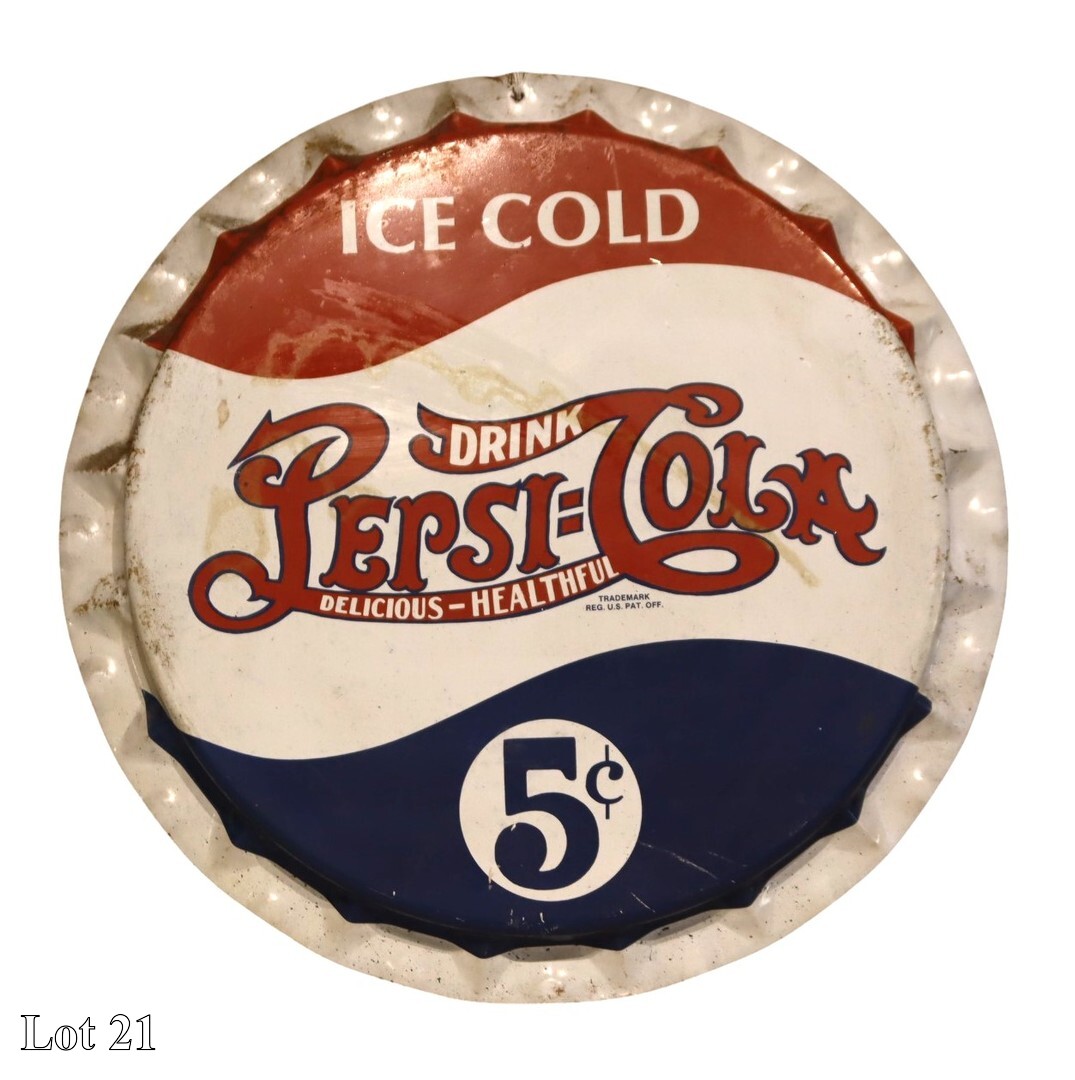 Pepsi Cola metal bottle top sign. ( Width:47 Height:47 )