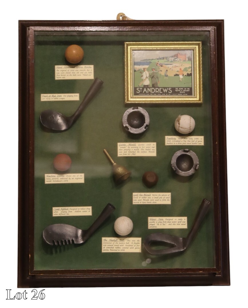 A collection of Golf accessories, framed. ( Width:44 Height:58 )