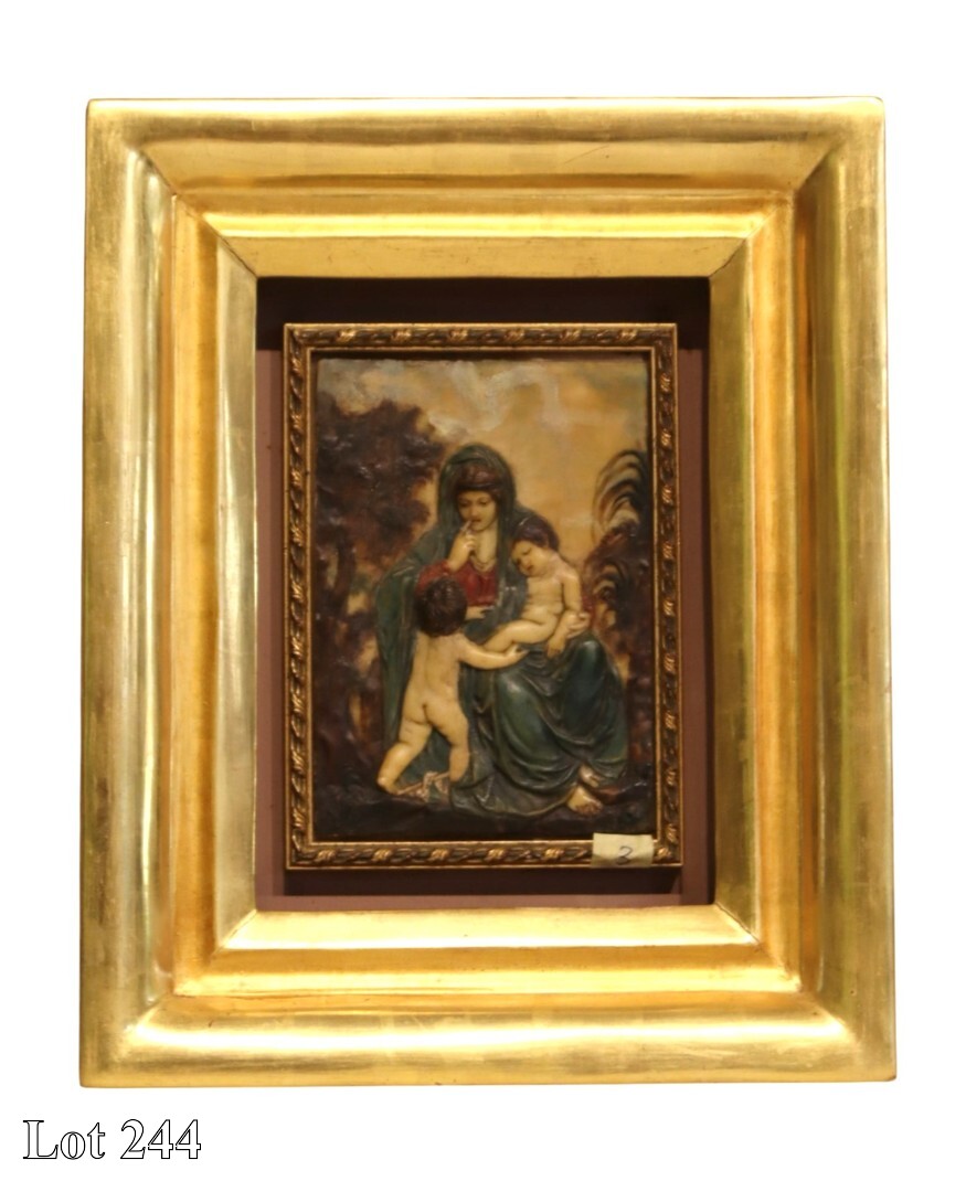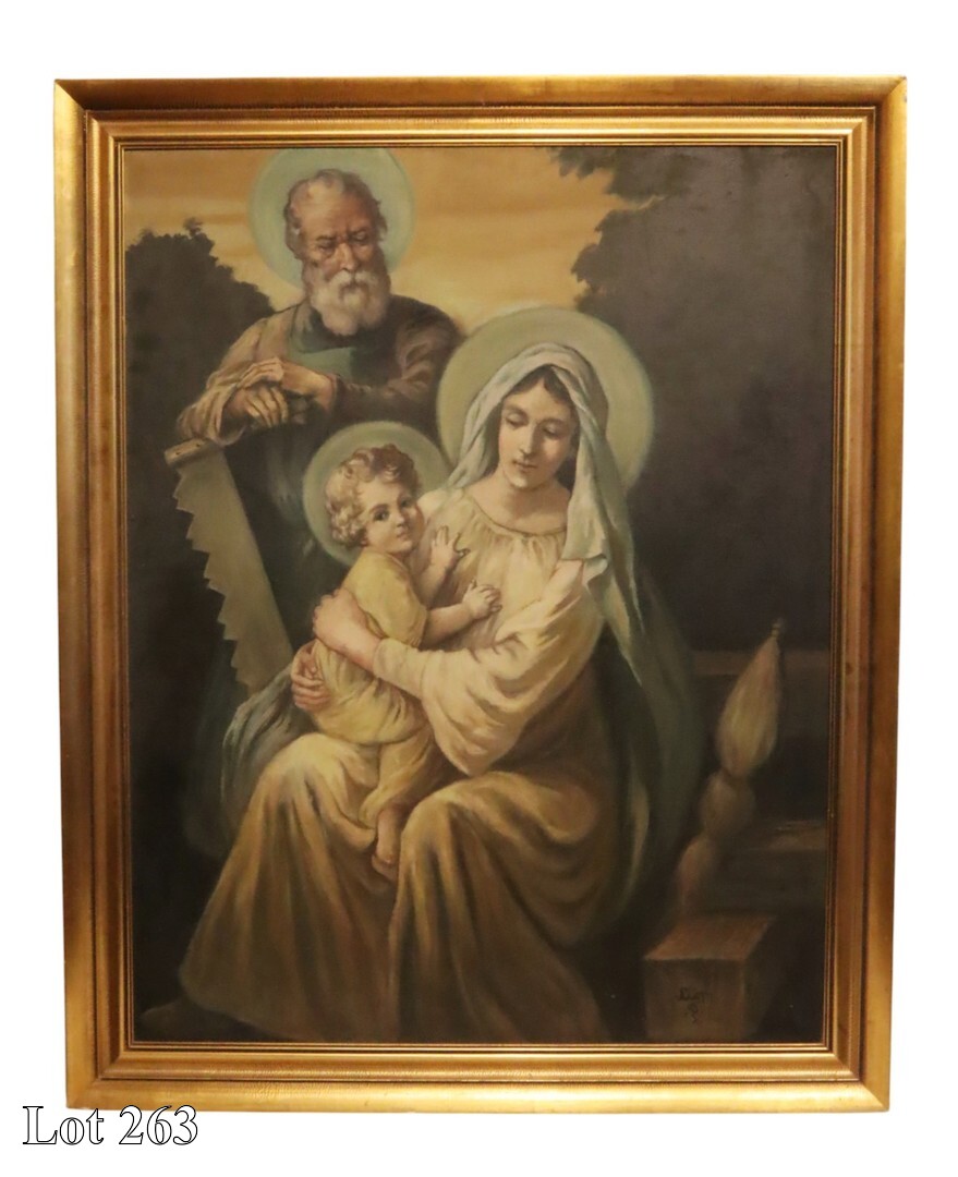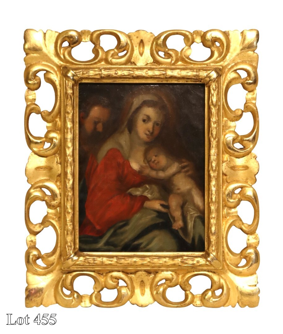 18th Century, The Holy Family, oil on copper, in ornate gilded frame. ( Width:28 Height:33 )