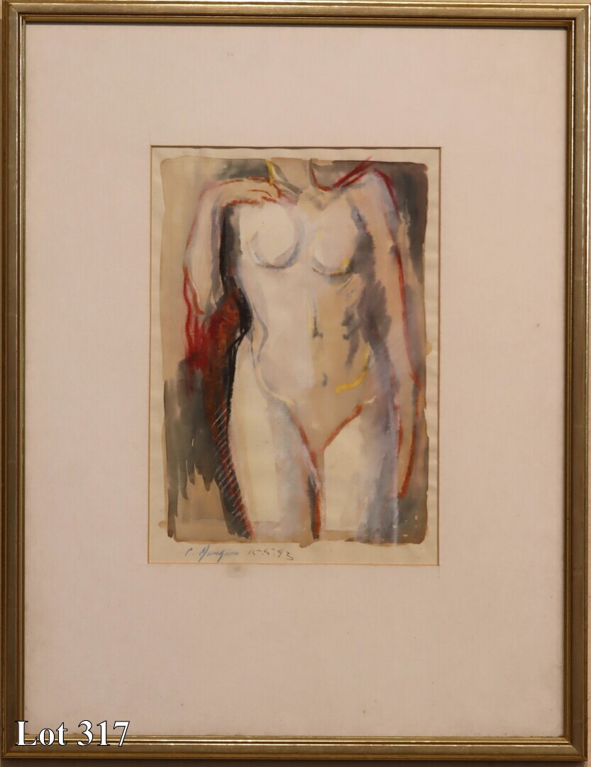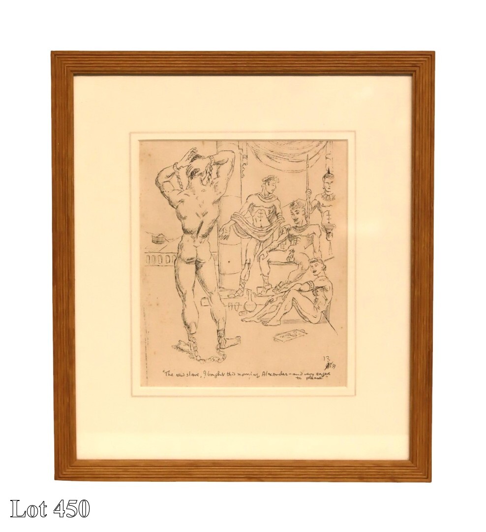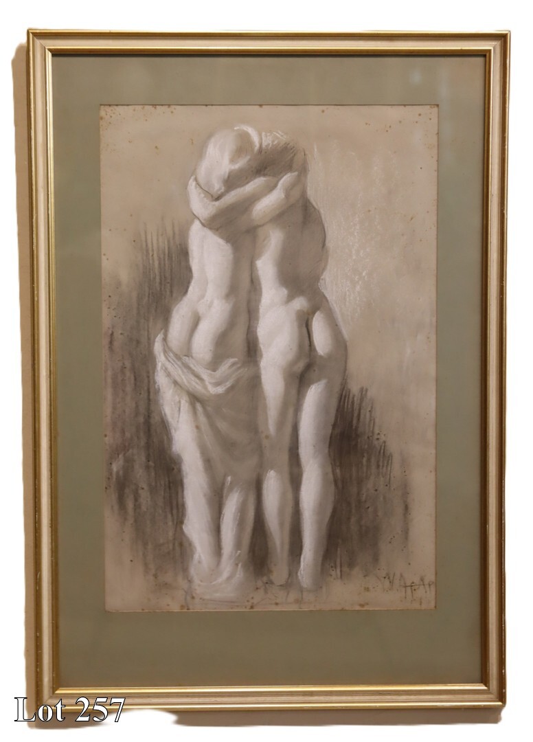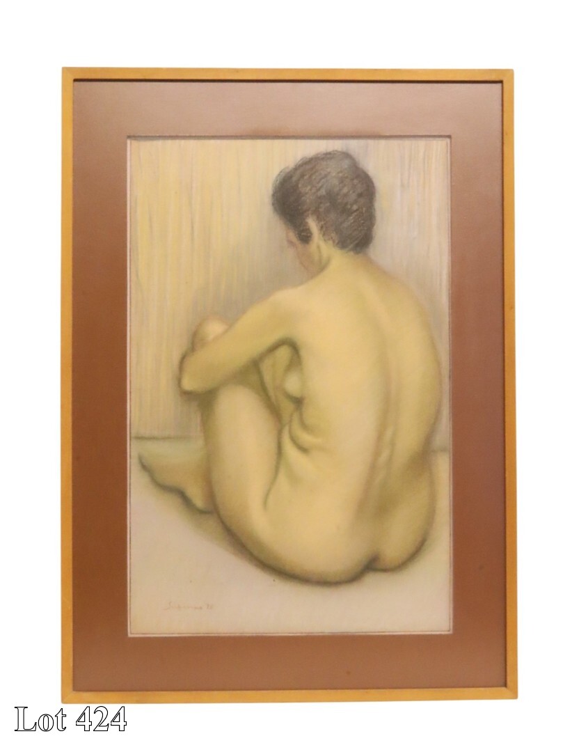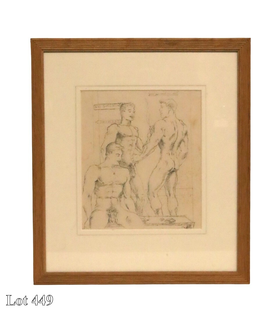 20th Century, Male Nude study, drawing. ( Width:37 Height:41 )