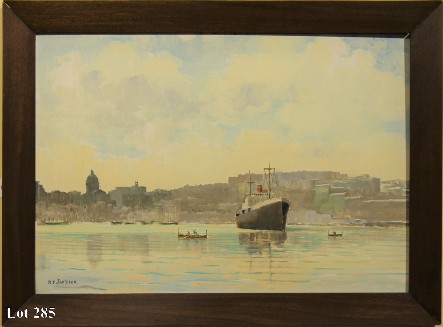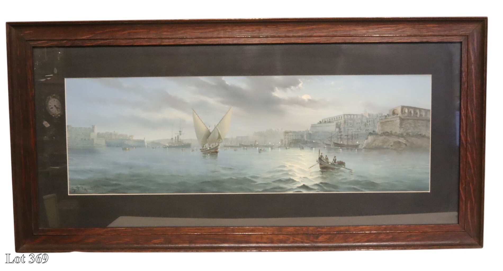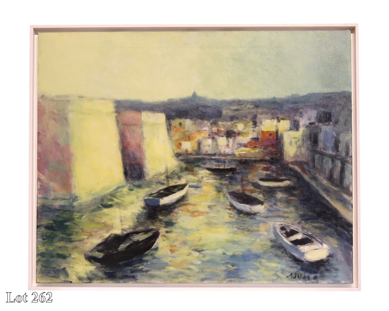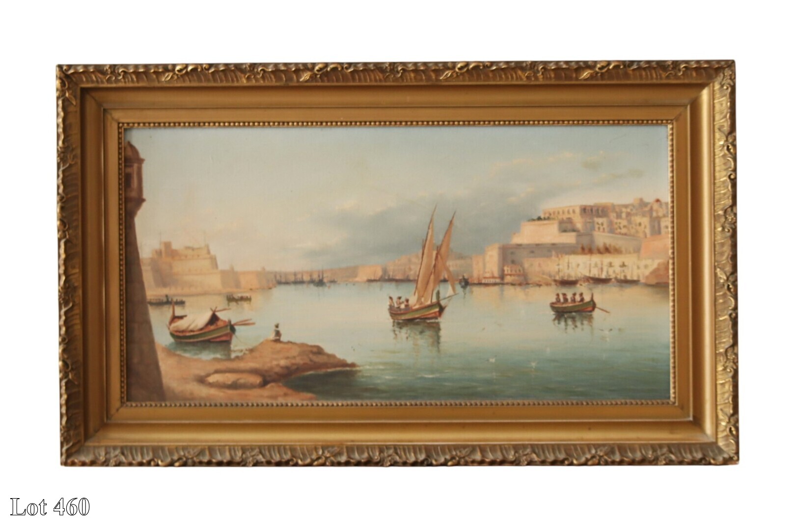 20th Century, The Grand Harbour Scene, oil on board, in ornate frame.