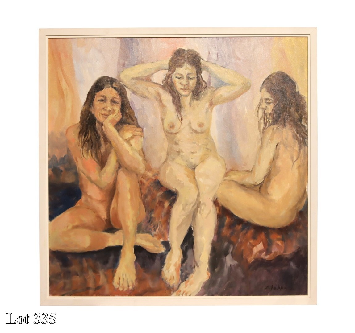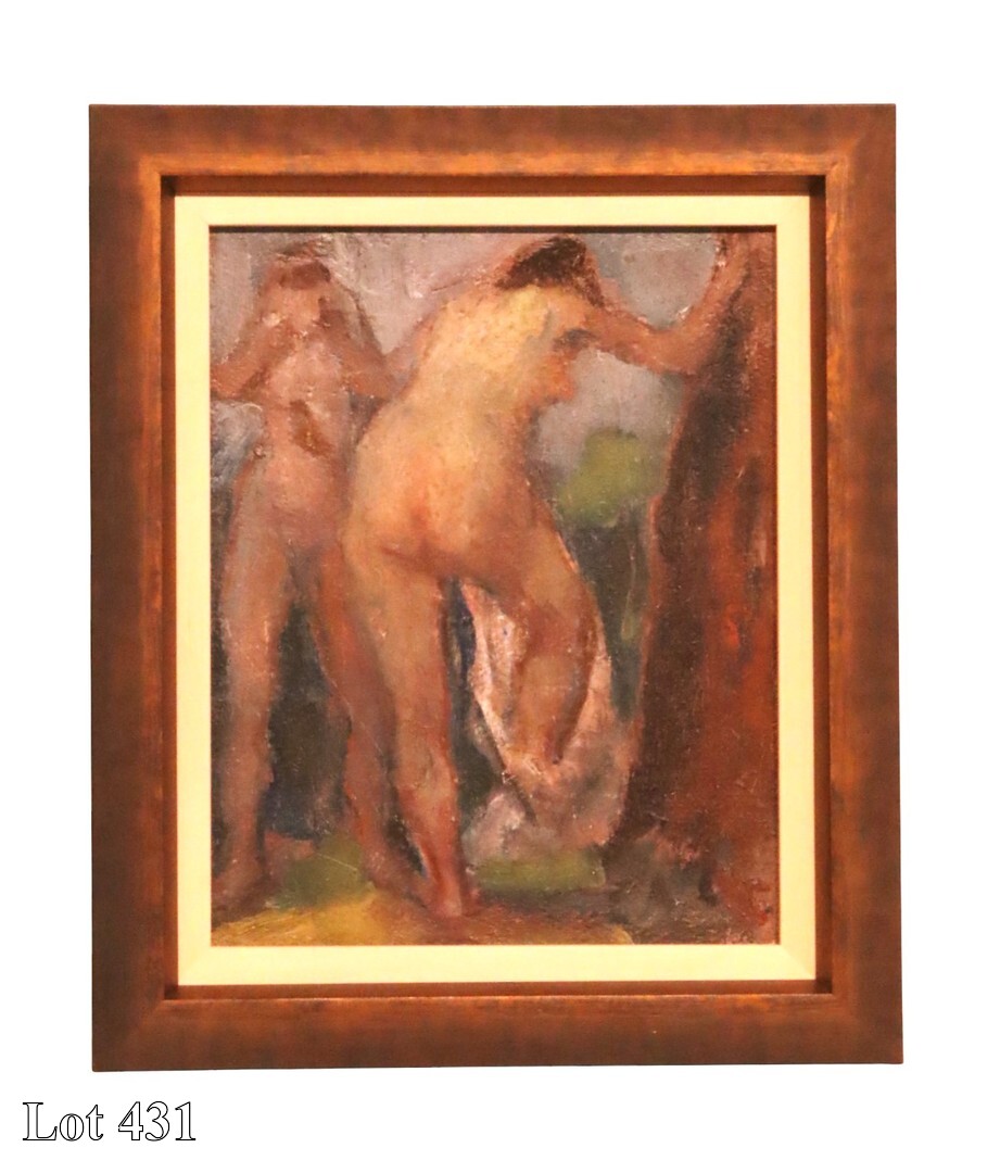 Willie Apap (1918-1970), Female Nudes, oil on canvas, (provenance from Willie Apap collection). ( Width:32 Height:38 )