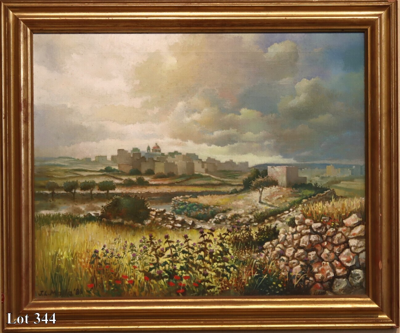 Carmelo Mangion (1905 - 1997), Maltese Valley, signed and dated 1945. ( Width:53 Height:44 )