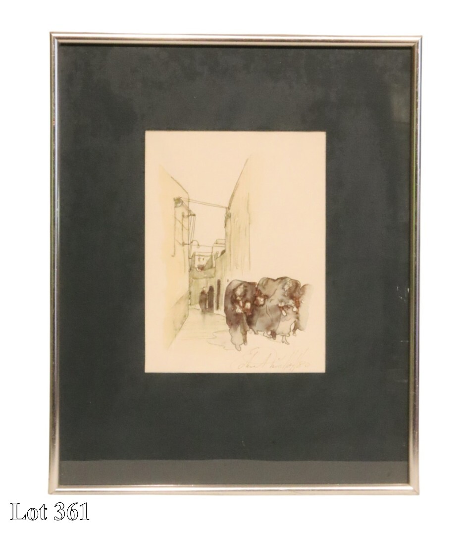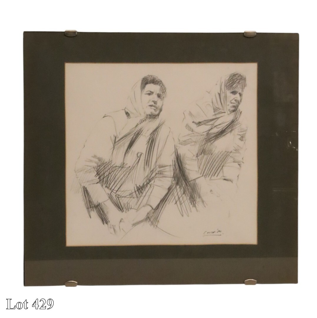 Joseph Cassar, two Maltese Women, pen on paper, signed. ( Width:47 Height:43 )