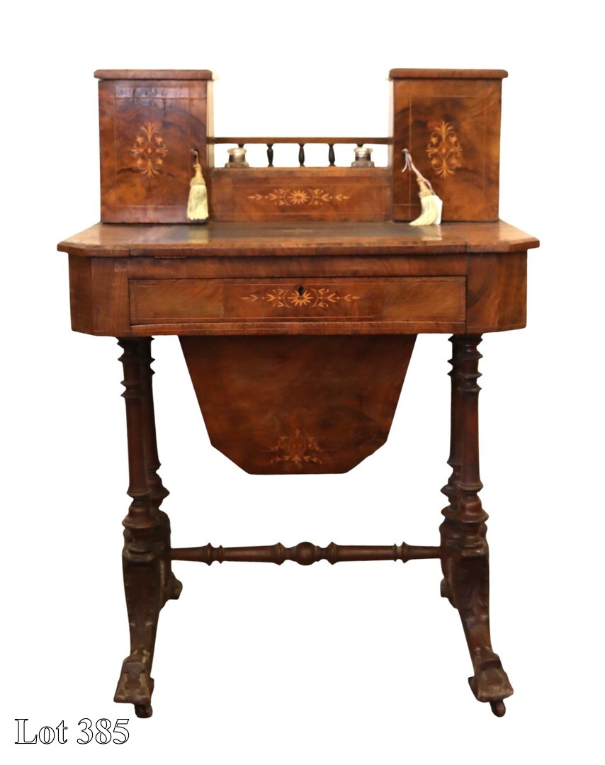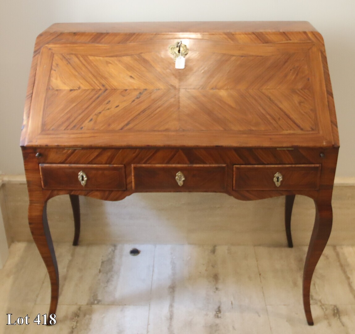 18th Century French Louis XV Bureau de Dame, interior fitted with small drawers and a hidden well, on high cabriole legs, veneered in kingwood, c.1750. ( Width:97 Height:101 )
