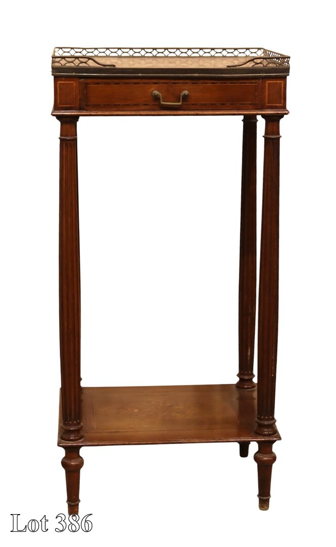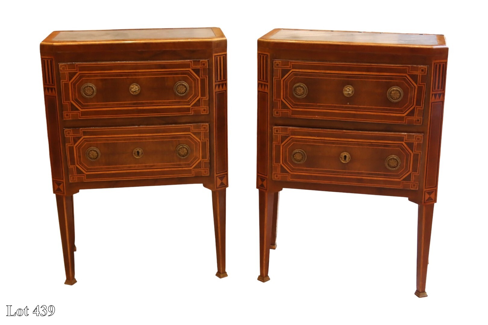 A pair of 19th Century chest of two drawers, with inserted grey marble top, on tapered legs.