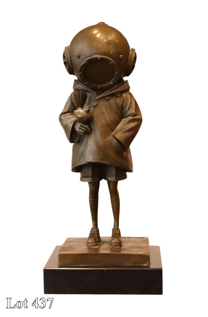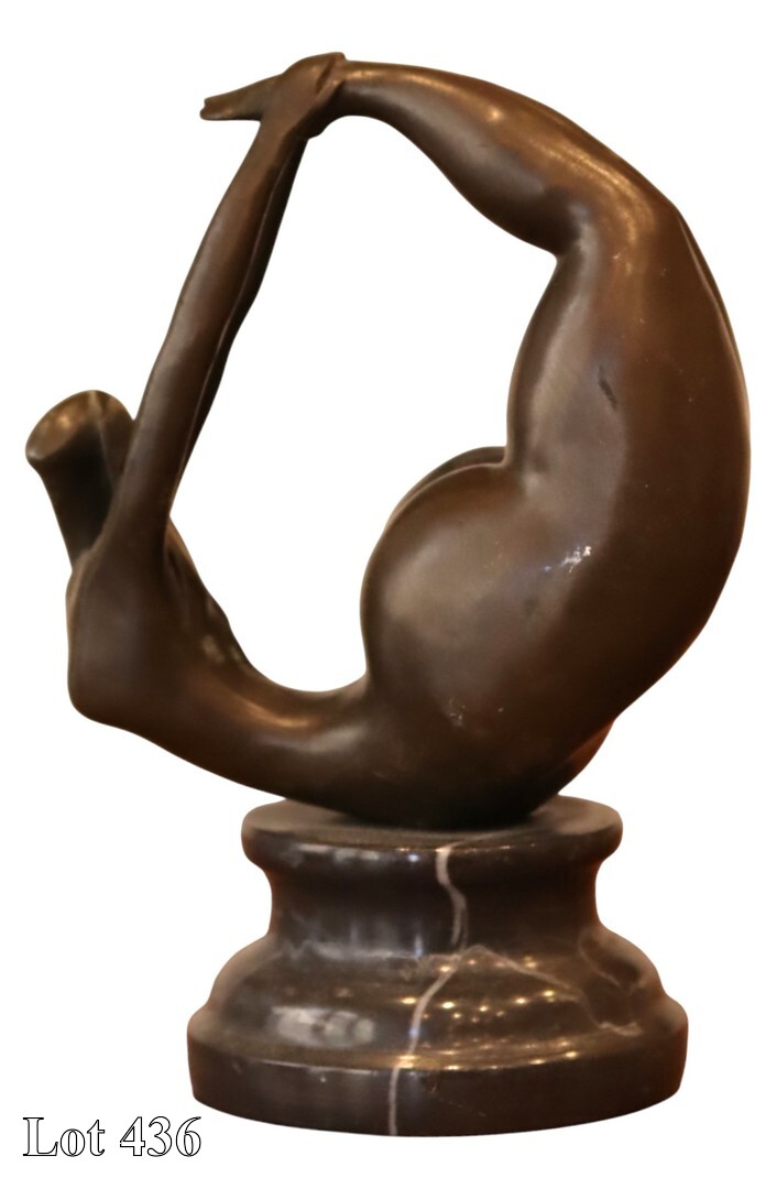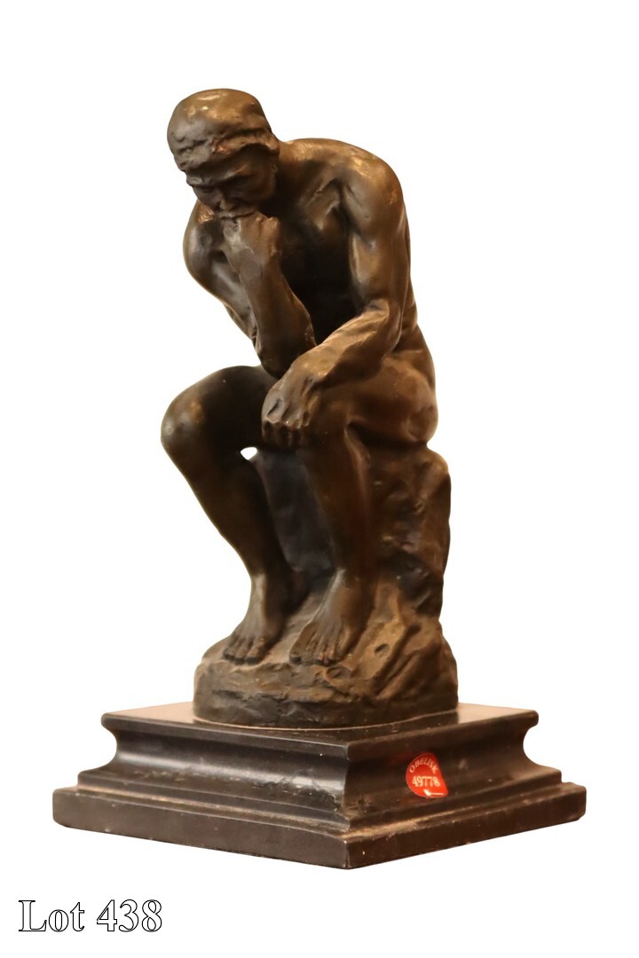 A bronze figure of Auguste Rodin, The Thinker, on marble plinth.