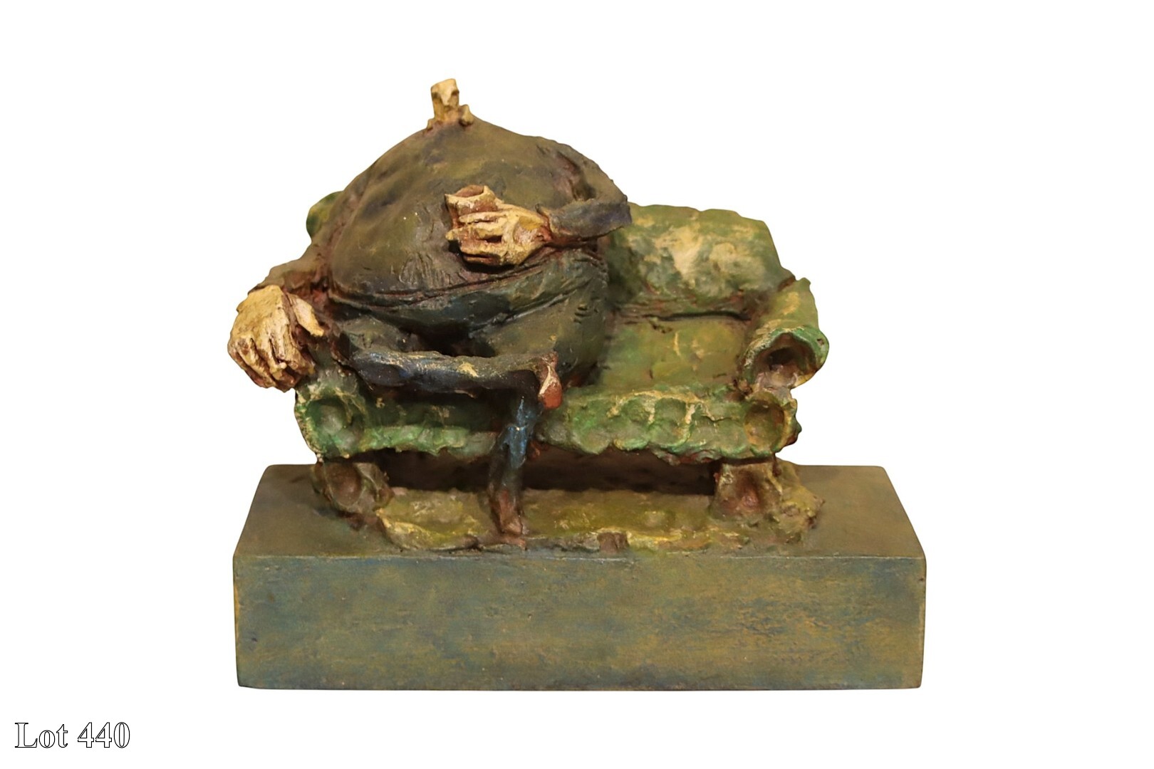 Victor Diacono (1915-2009), Men on Sofa, terracotta, signed. ( Width:36 Height:30 Depth:15)