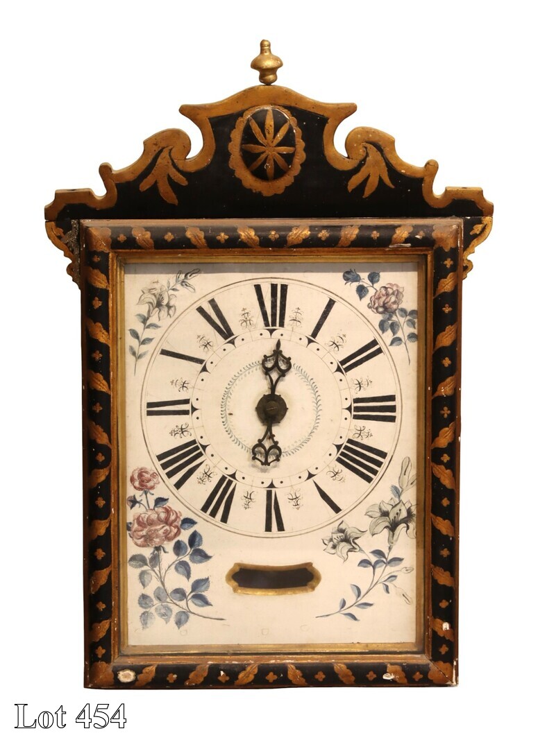 18th Century Maltese gilded and painted wall clock, with Roman Numerals.