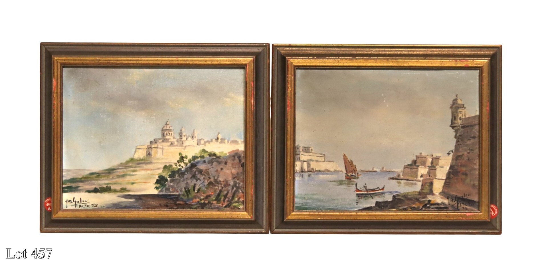 Joseph Galea (1904-1985), pair, Mdina and Valletta, oil on canvas, signed. ( Width:30 Height:24 )