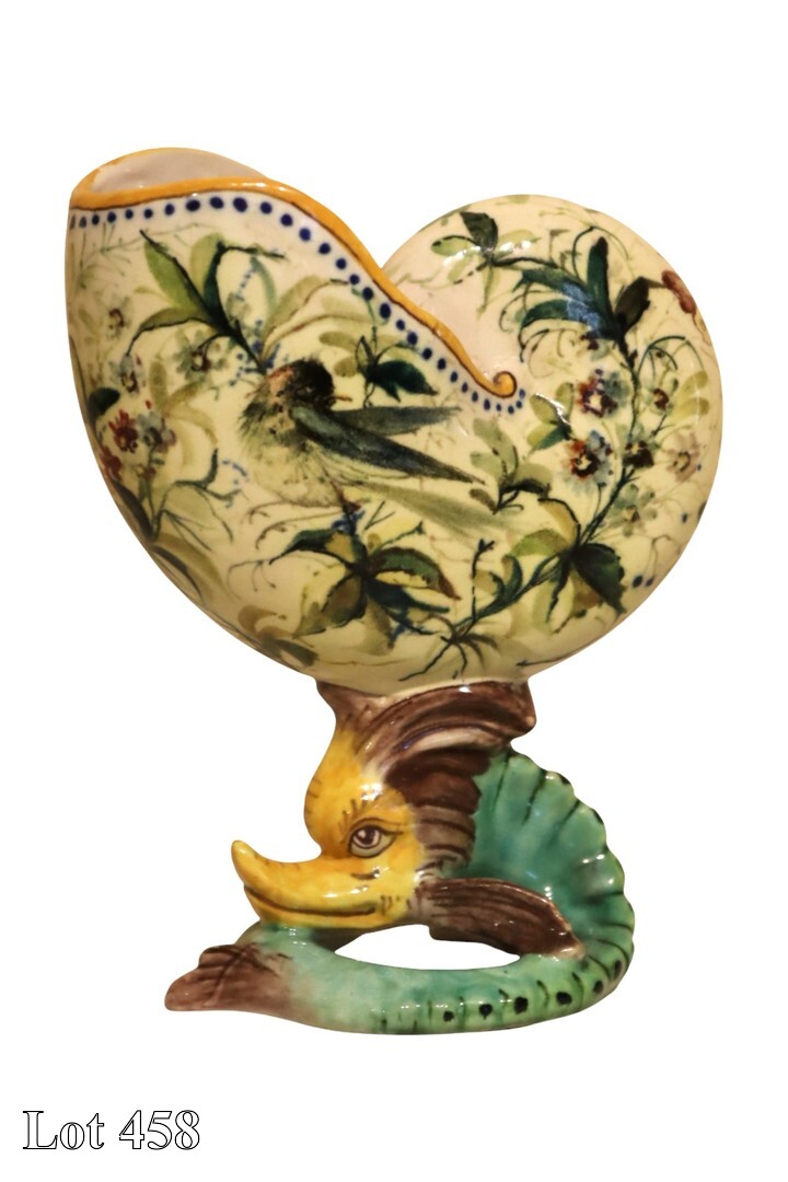 20th Century maiolica vase in a shape of a shell. ( Height:21 )