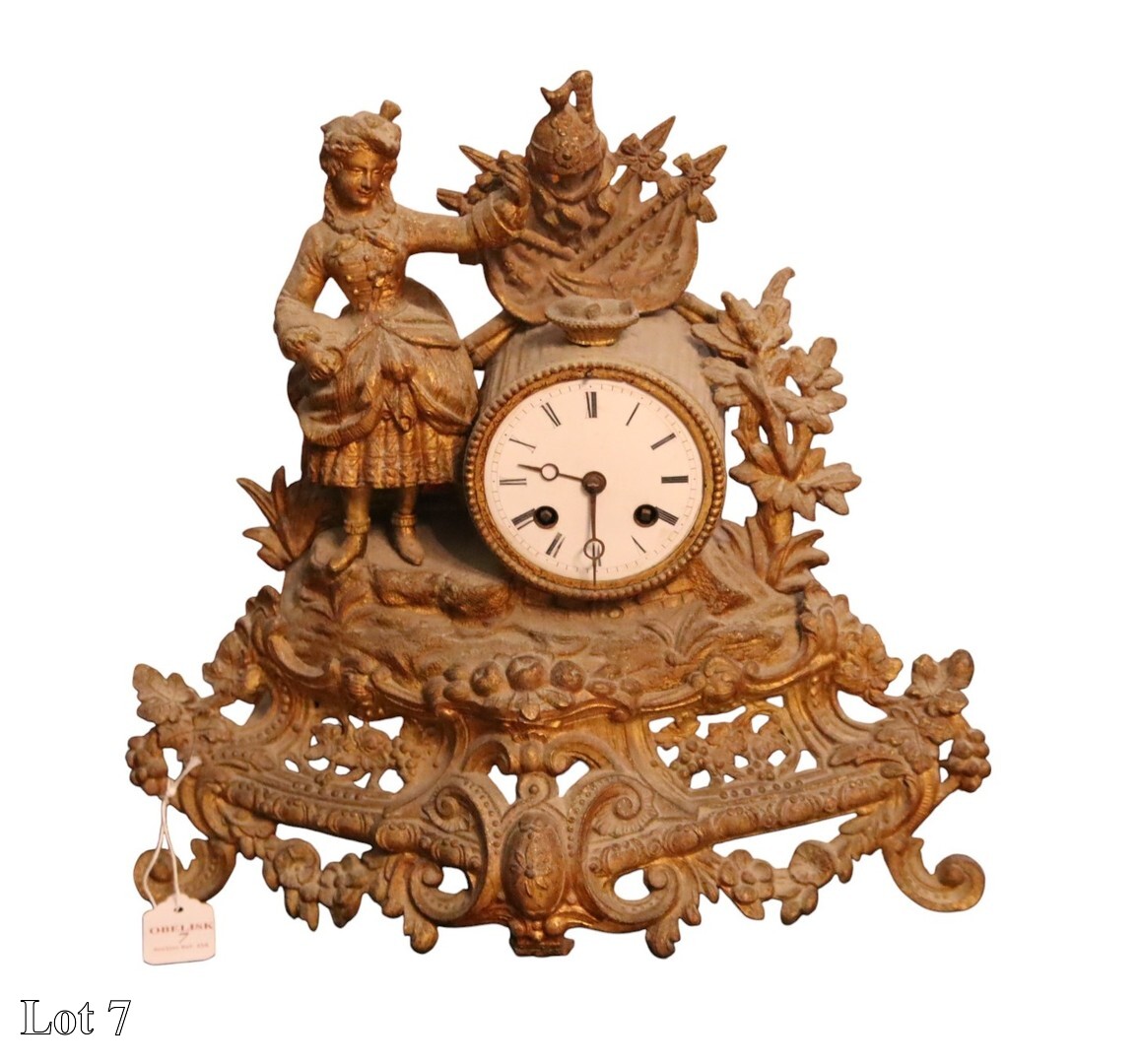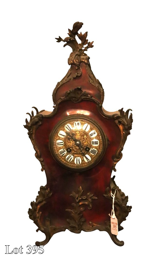 19th Century French mantel clock, with Roman numerals. ( Width:34 Height:30 )