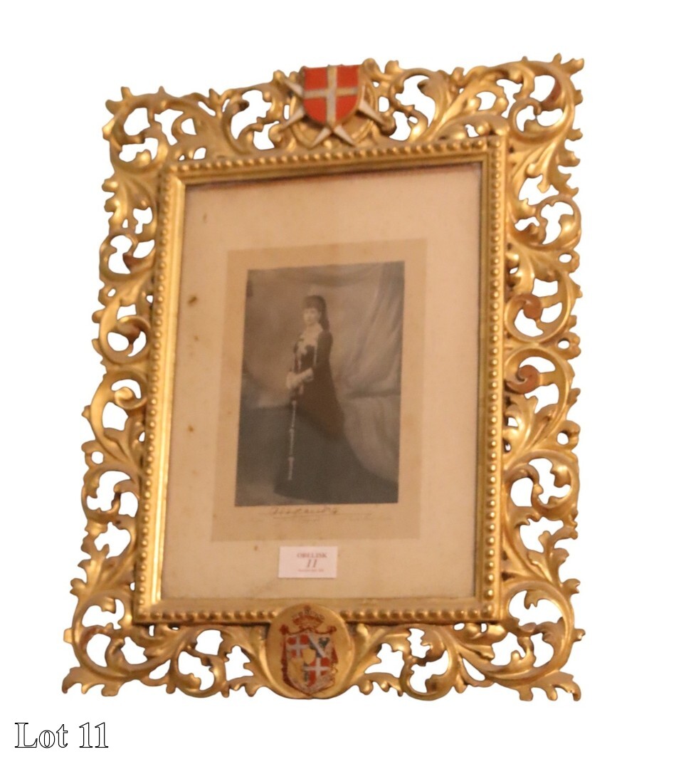 Queen Alexandra (1844 - 1925), photograph, in ornate gilded frame, with coat-of-arms. ( Width:43 Height:54 )
