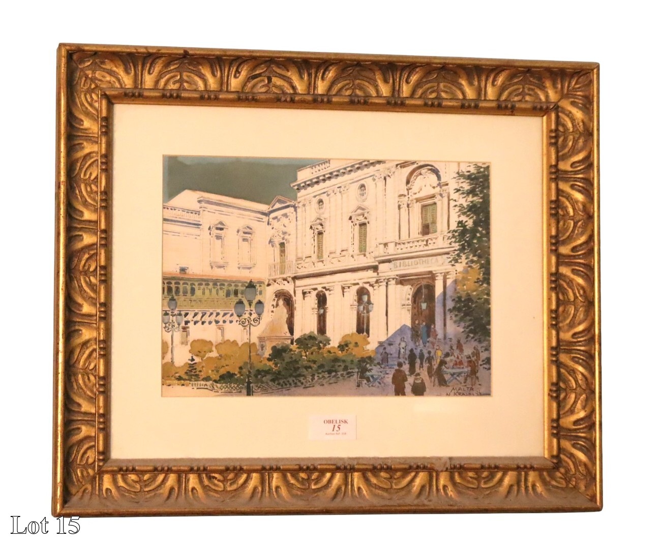 Nikolay Petrovich Krasnov (1864-1939), The Grandmaster's Palace Valletta and Neptune's Courtyard, signed and dated 1922, watercolour, signed and dated 1922, (published and exhibition dedicated to The Plein-air Russia Master Nikolay Petrovich Krasnov 1864 - 1939, page 40, by Roger De Gaetano). ( Width:45 Height:57 )