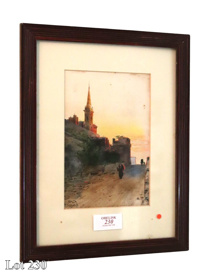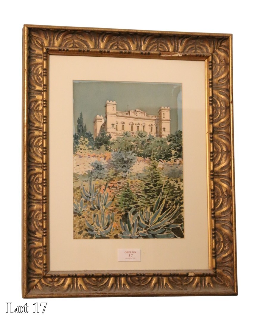 Nikolay Petrovich Krasnov (1864-1939), Verdala Castle, signed, watercolour. (published and exhibition dedicated to The Plein-air Russia Master Nikolay Petrovich Krasnov 1864 - 1939, page 41, by Roger De Gaetano). ( Width:45 Height:57 )