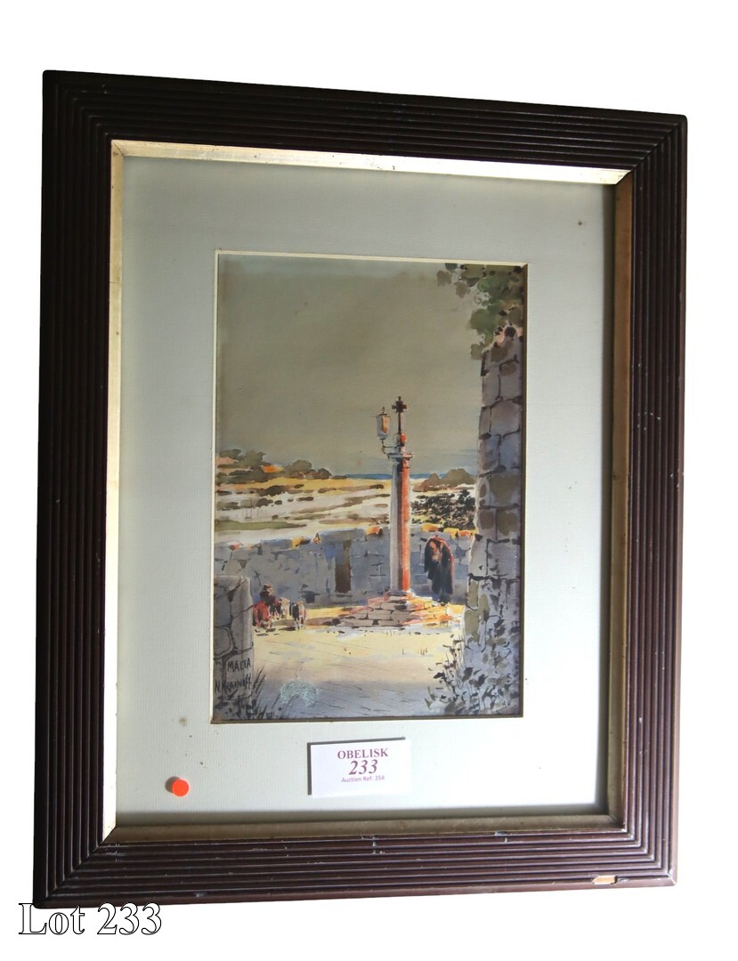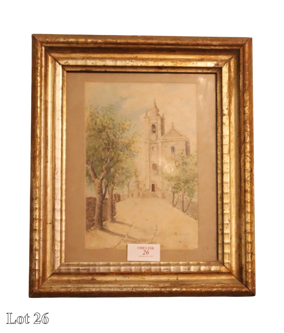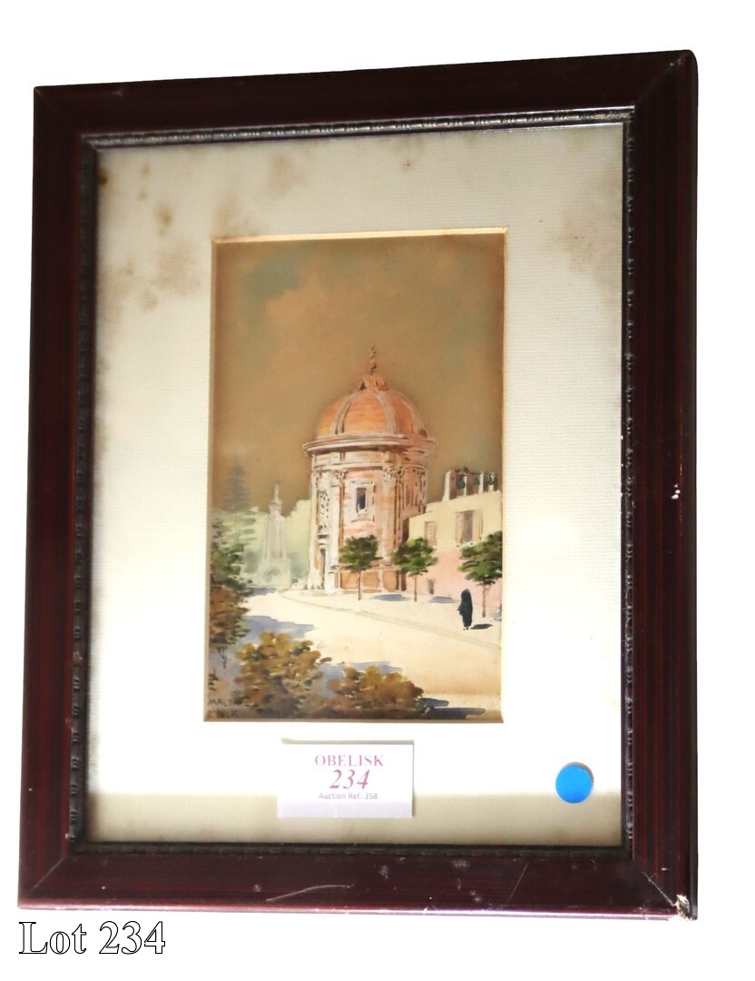 James Galizia, Dingli Church, watercolour. ( Width:33 Height:39 )