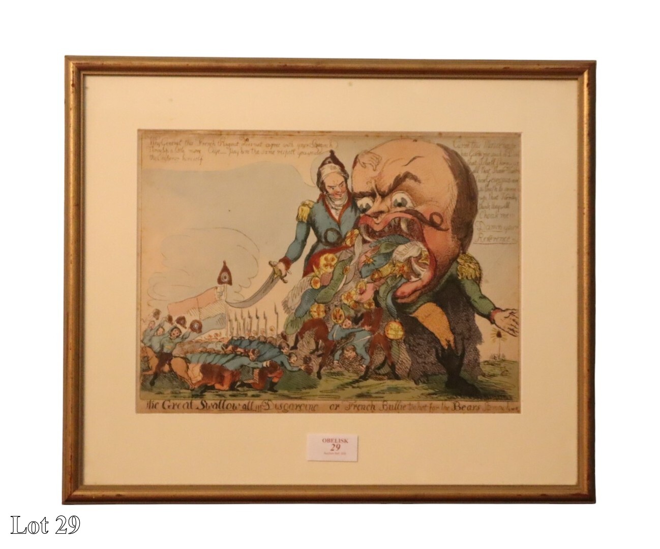 19th Century caricature, The Great Swallow All , coloured engraving, dated 1803, (published in Malta and British and French Caricature, 1798 - 1815). ( Width:51 Height:42 )