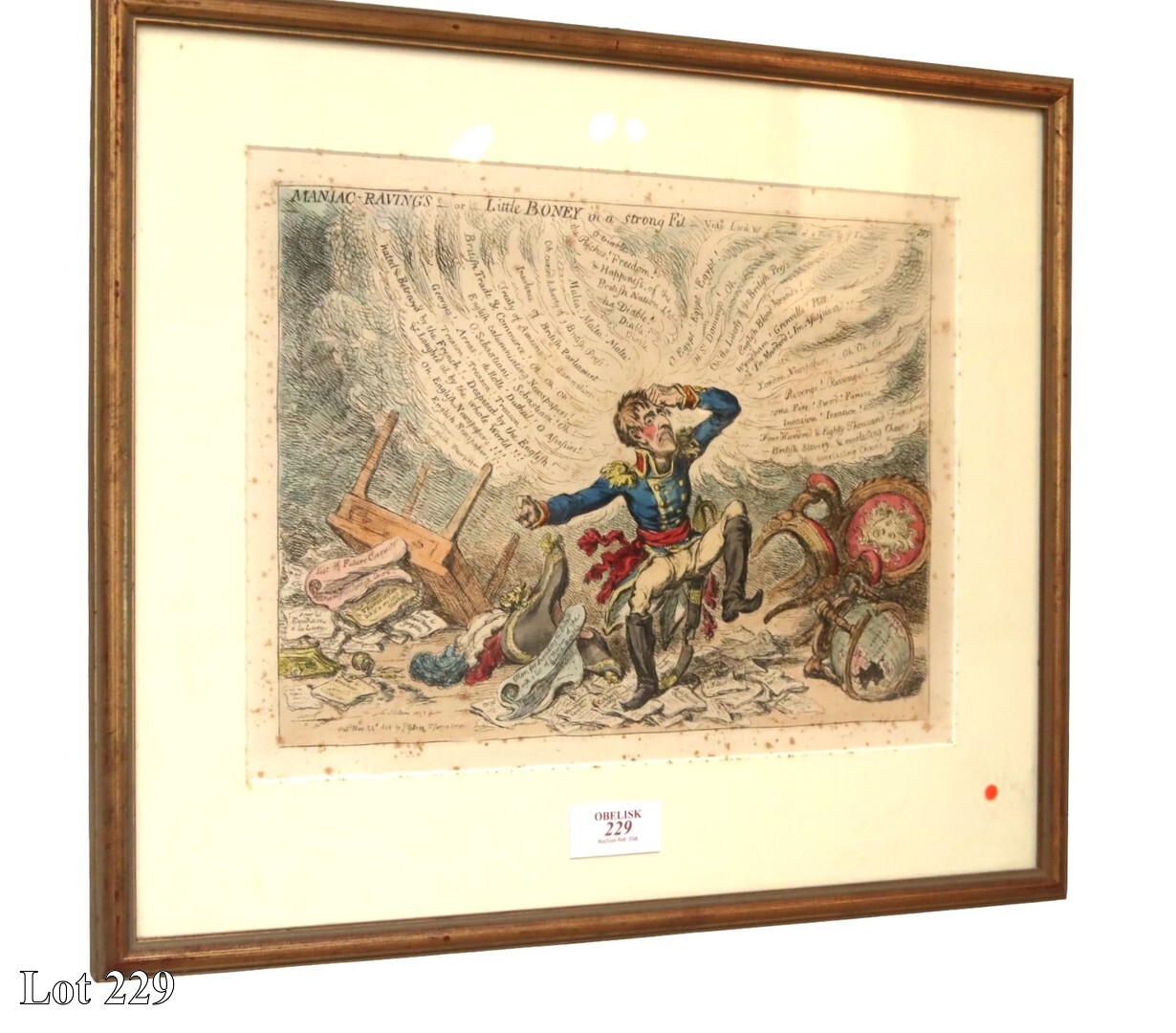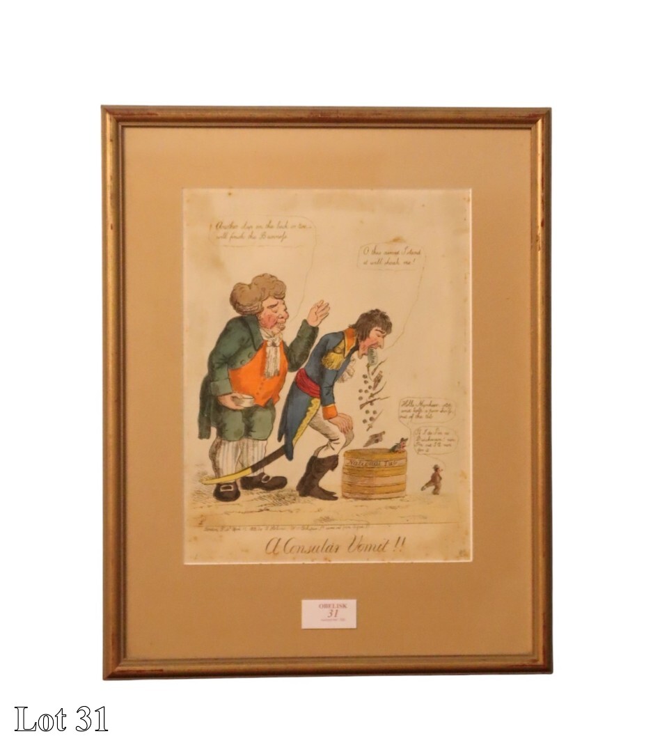 19th Century caricature, a Consular Vomit, coloured engraving, dated 1803, (published in Malta and British and French Caricature, 1798 - 1815). ( Width:40 Height:50 )