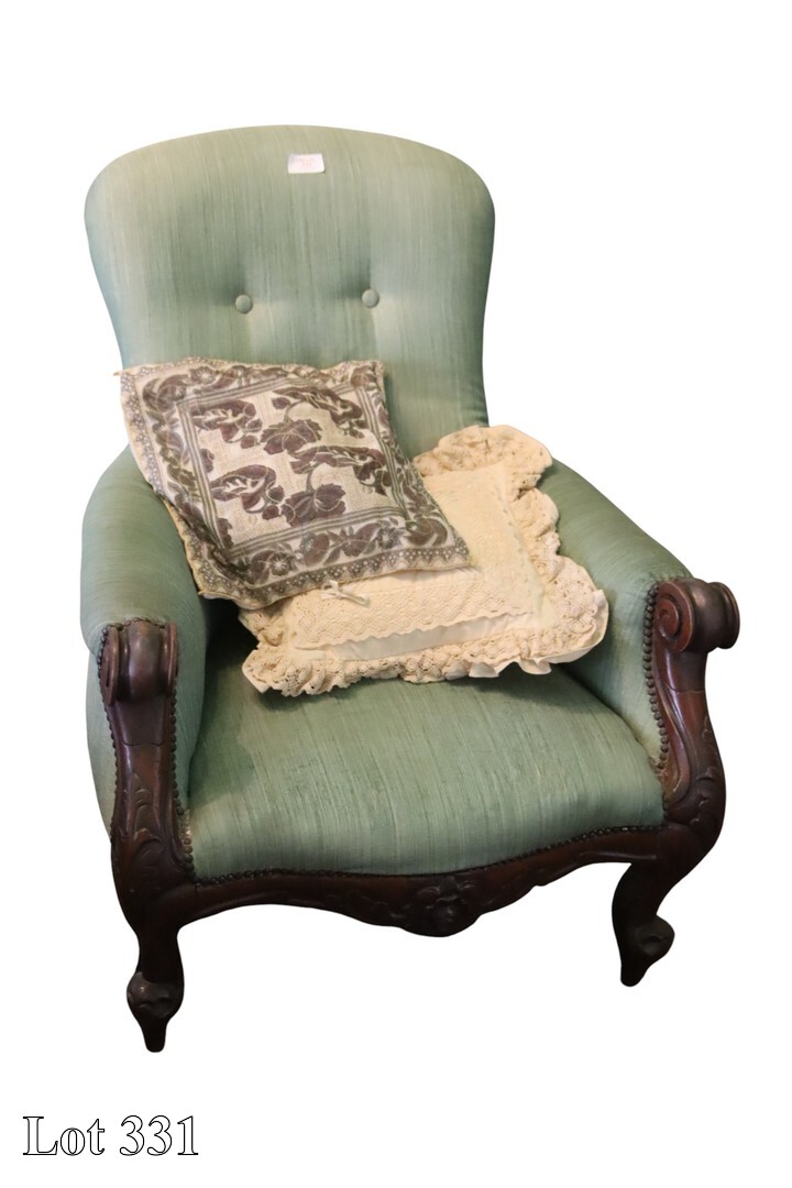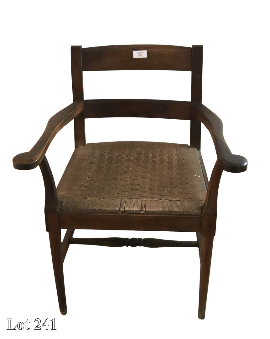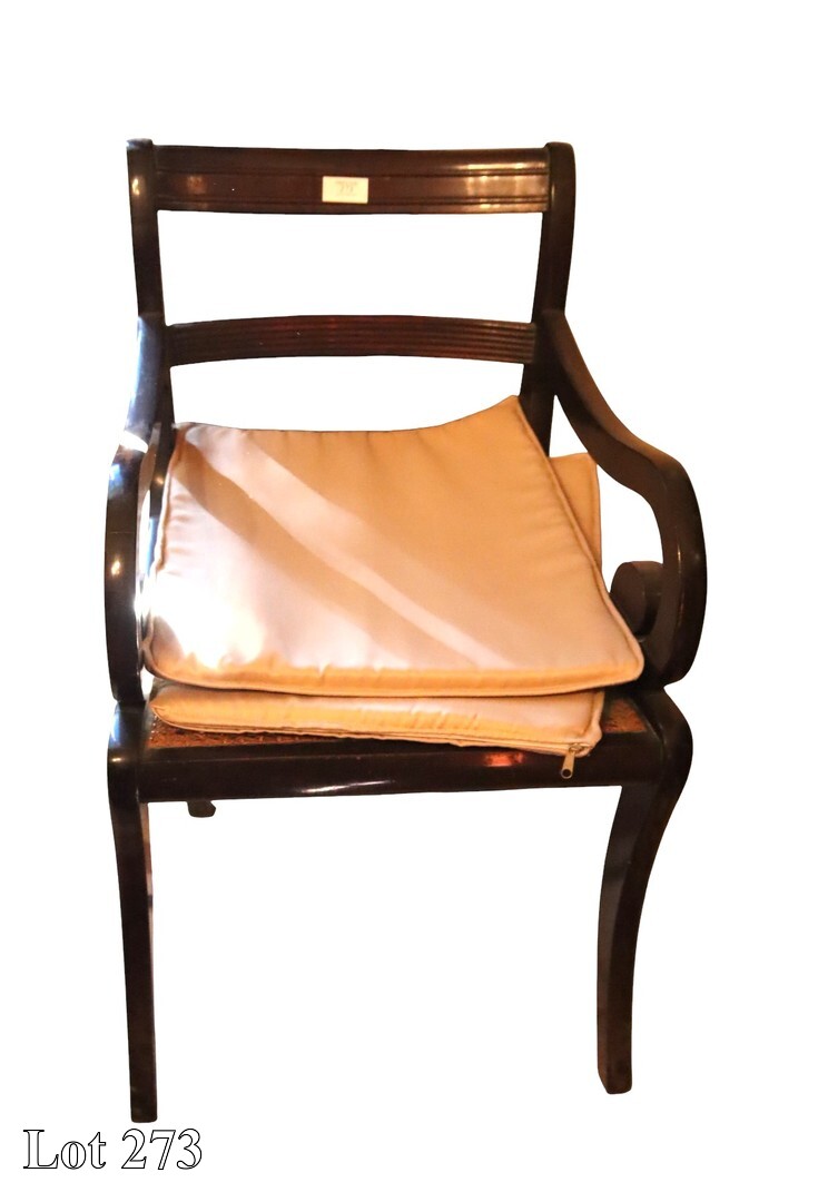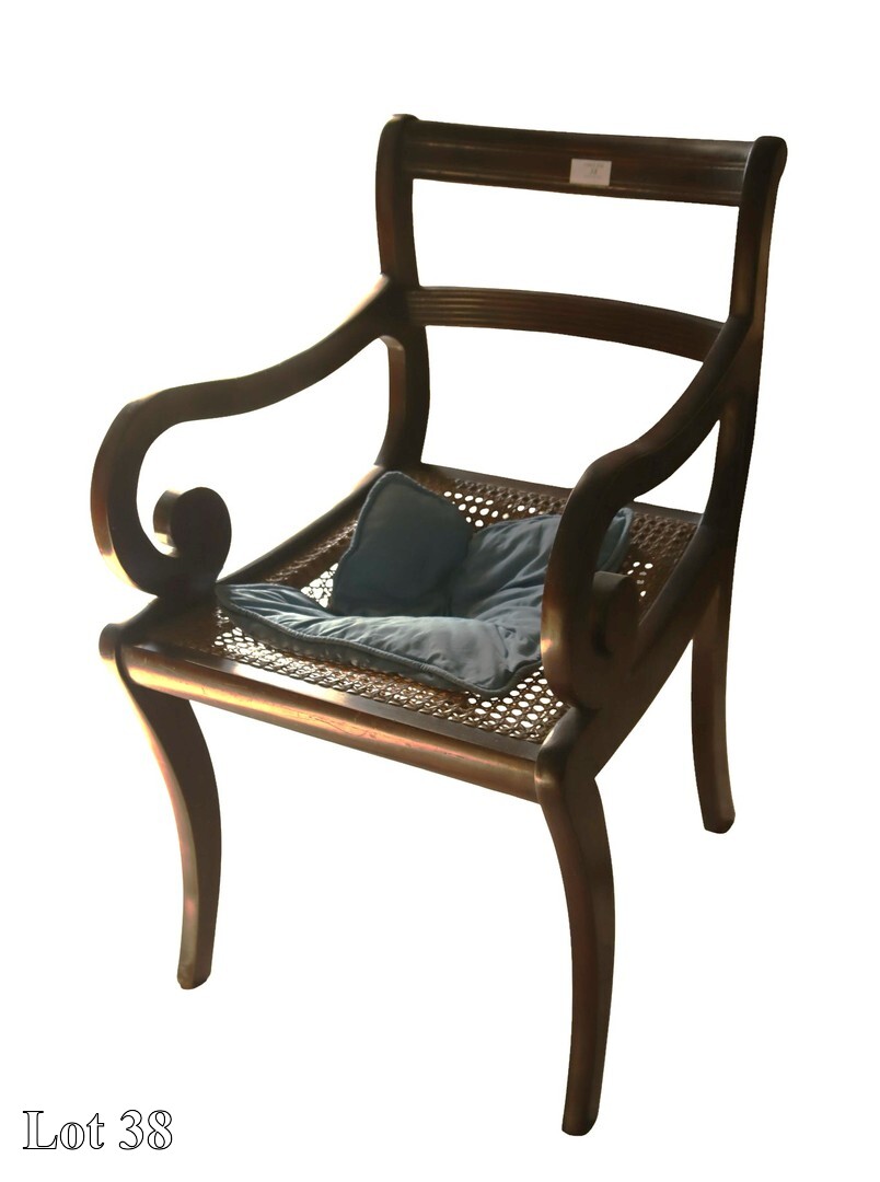 19th Century mahogany carver, with cane seat (damaged).