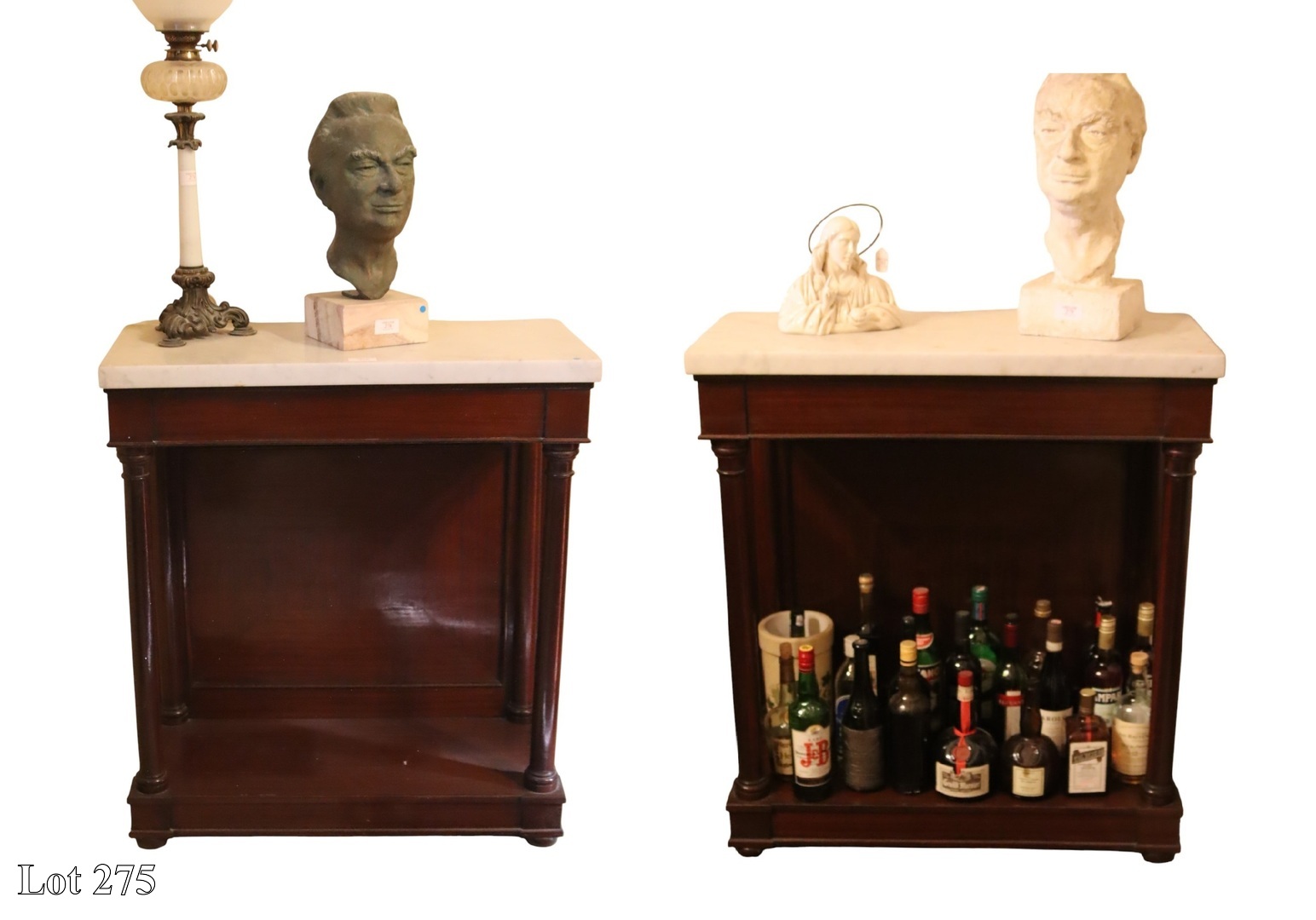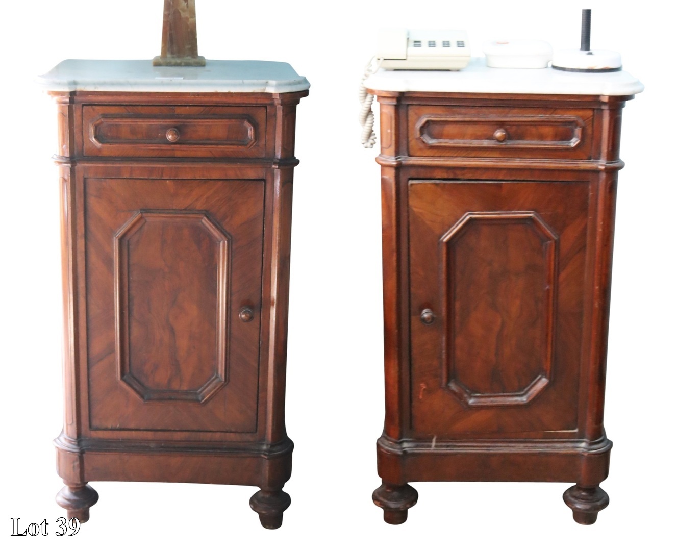 A pair of late 19th Century bedside commodes, with white marble top. ( Width:50 Height:88 Depth:39)