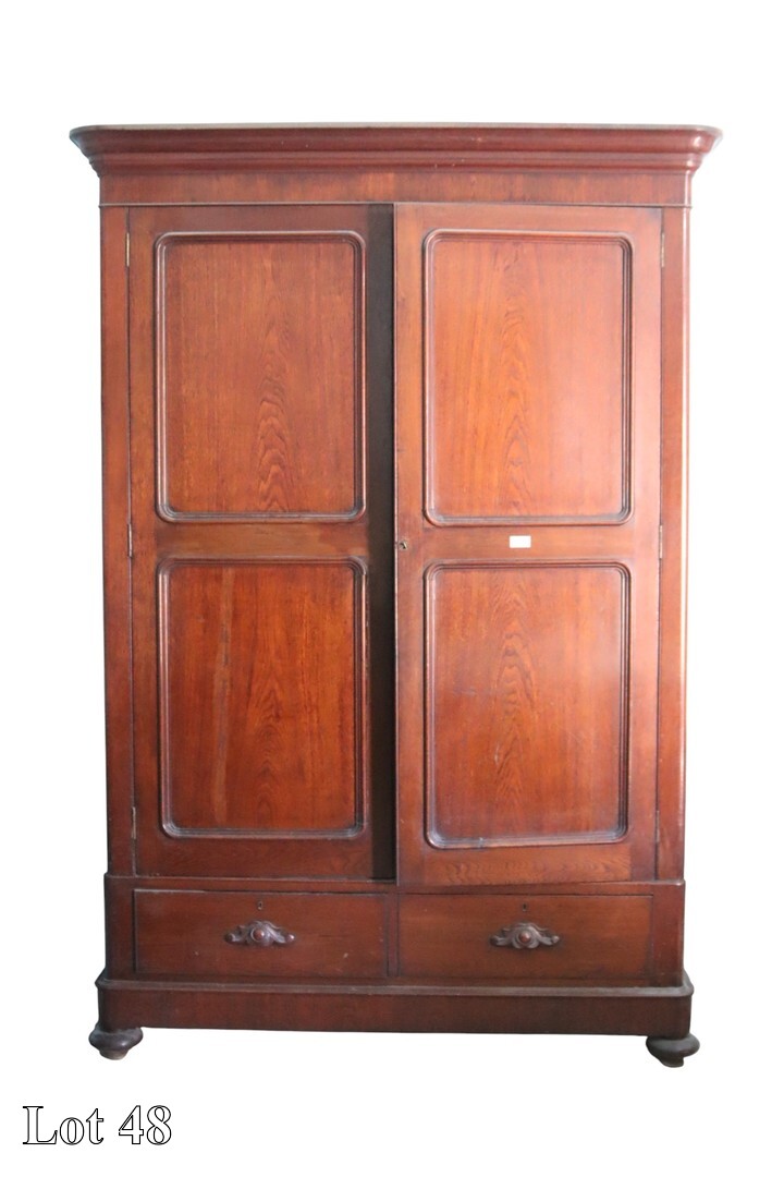 A 19th Century Maltese cabinet stained red deal, the case fitted with four fielded panel doors, enclosing shelving, on a plinth base. ( Width:106 Height:209 Depth:41)