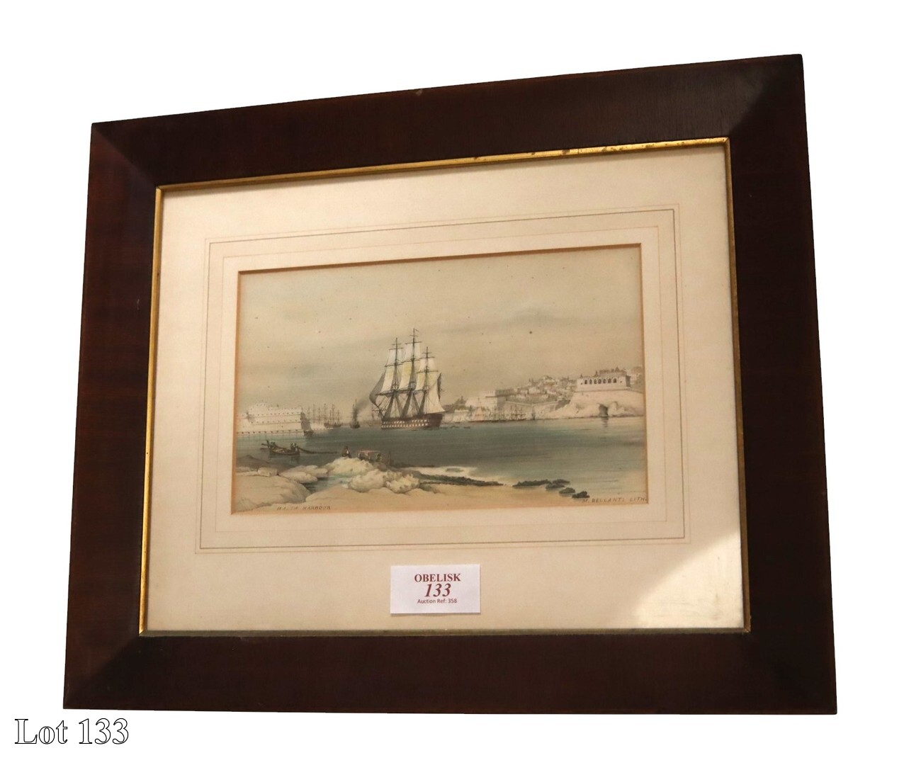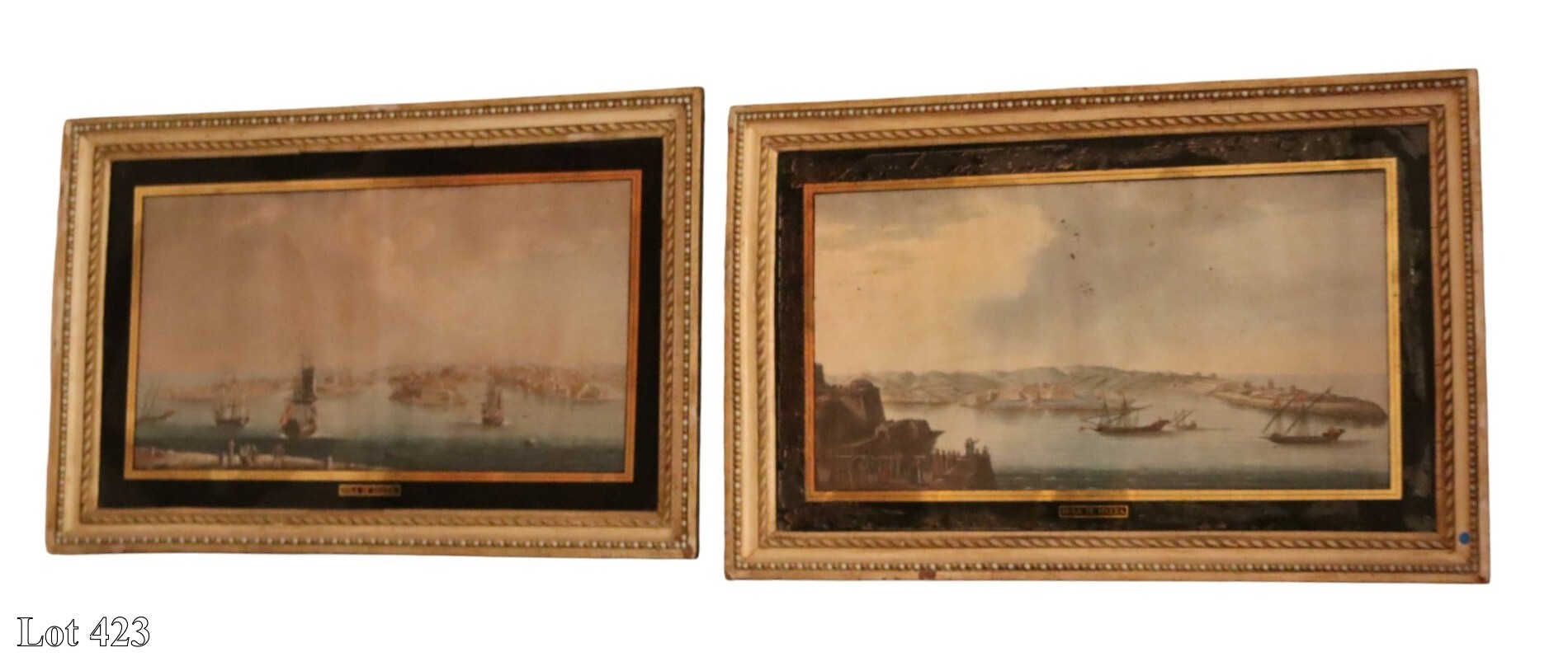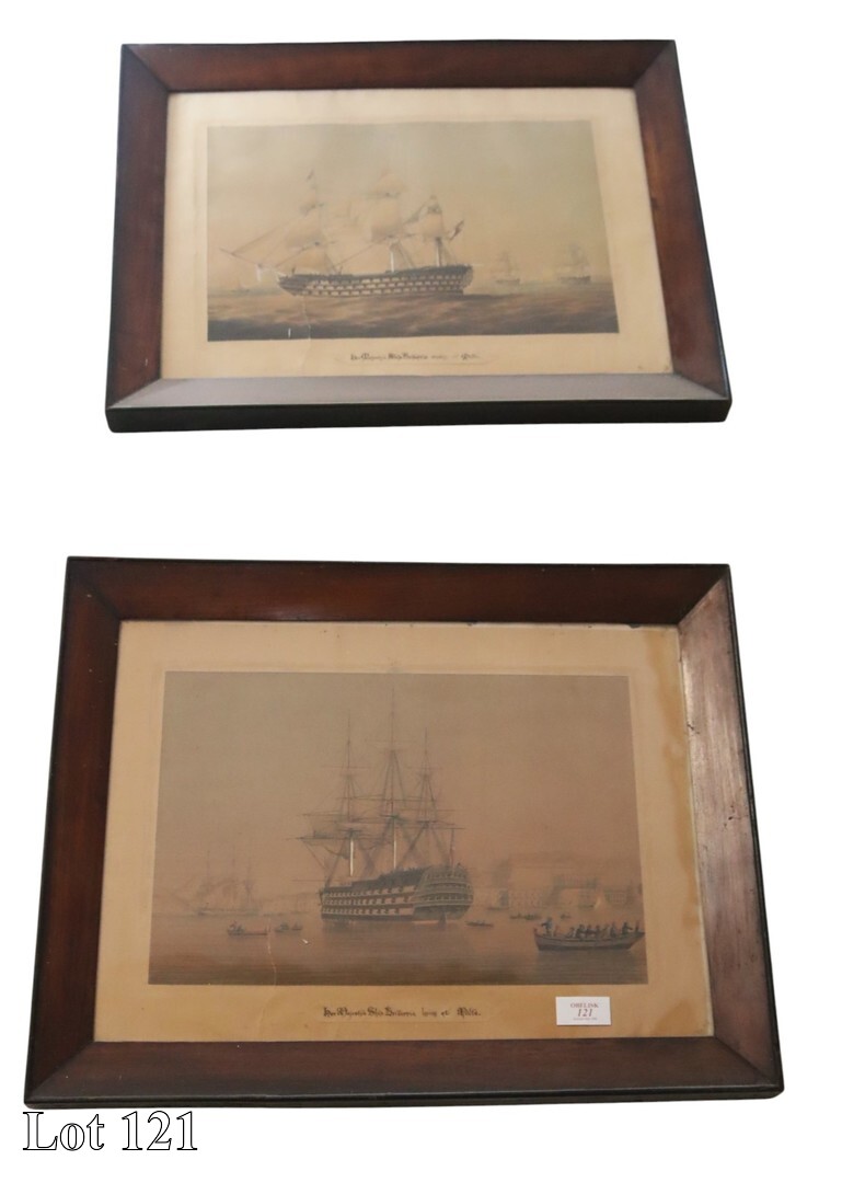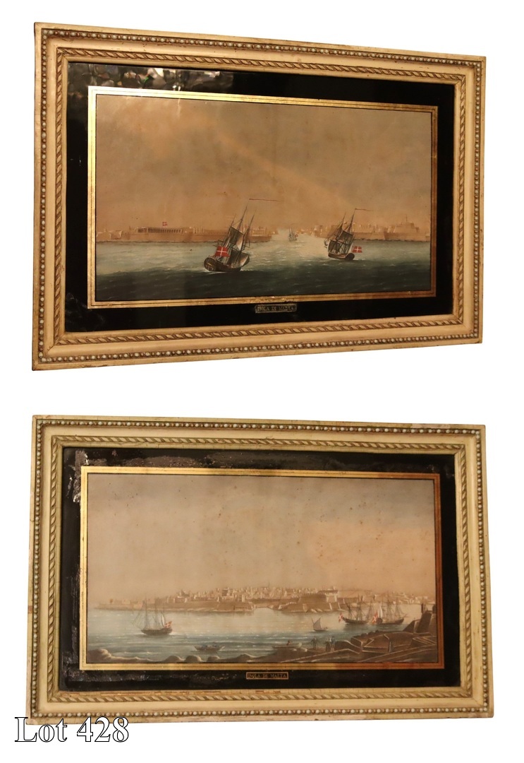 A pair of Late 18th/early 19th Century, views of Galleons entering the Grand and Marsamxetto Harbour, watercolour. ( Width:81 Height:53 )