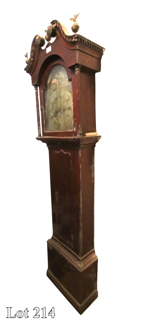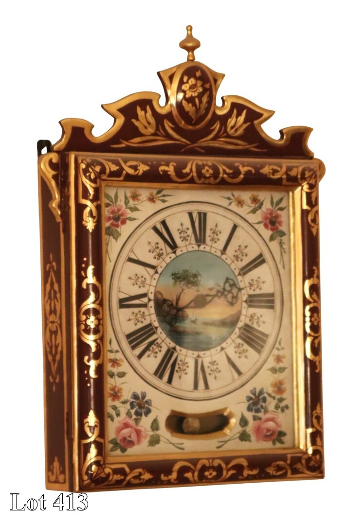 Late 18th /early 19th Century Maltese painted and gilded wall clock, with Roman Numerals, complete with original mechanism and original lead weights. ( Width:53 Height:80 Depth:17)