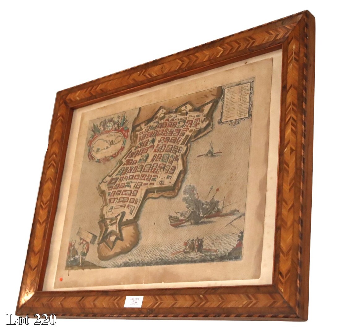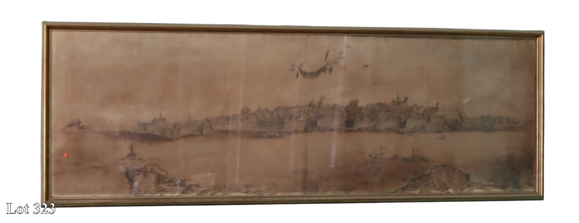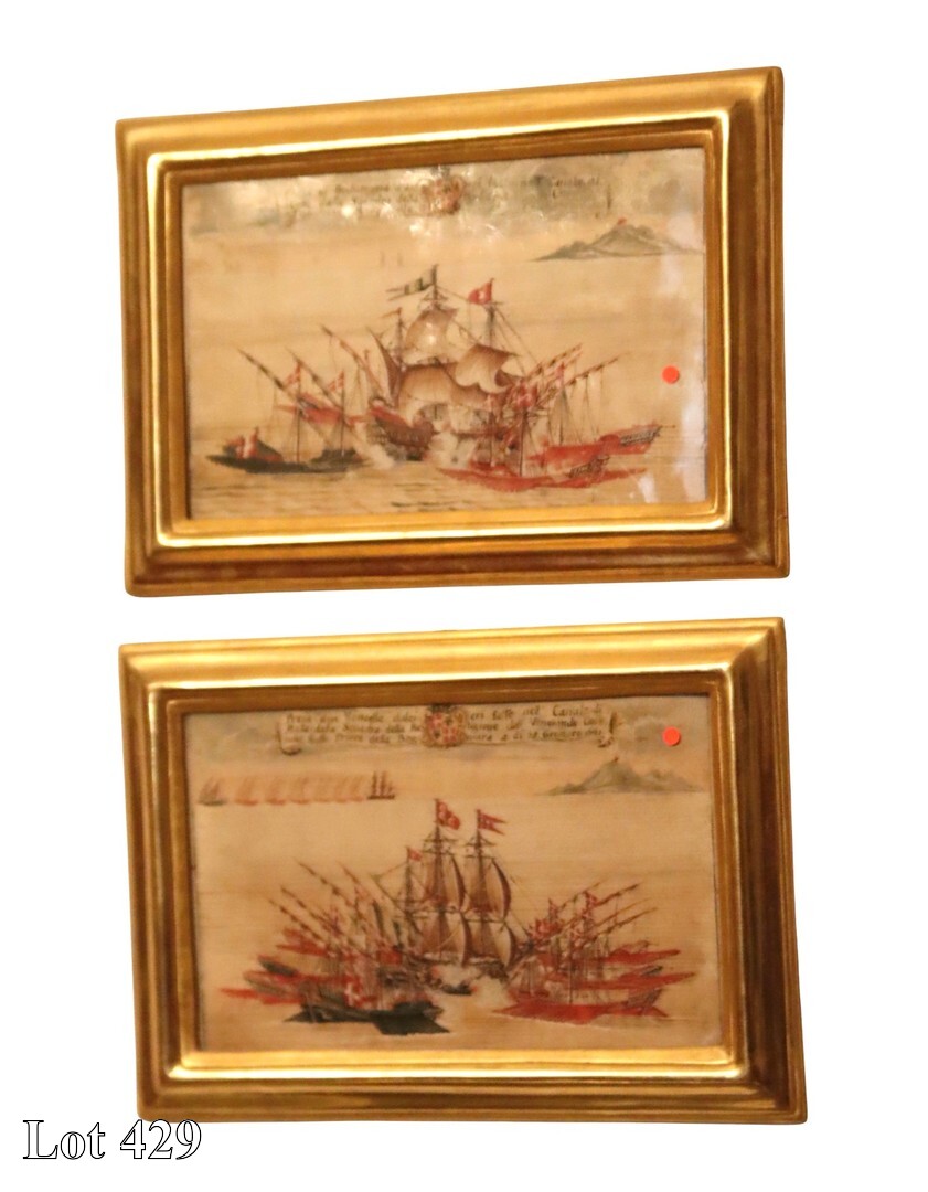 A pair of early 17th Century, Battle Scenes of the Order of St John and The Ottoman Navy, watercolour, in gilded frame, dated 1661. ( Width:34 Height:24 )