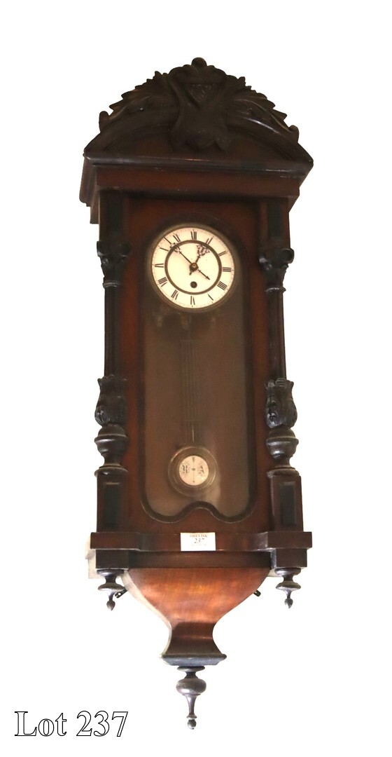 19th Century French mantel clock, with brass dial and Roman Numerals. ( Width:22 Height:45 Depth:12)