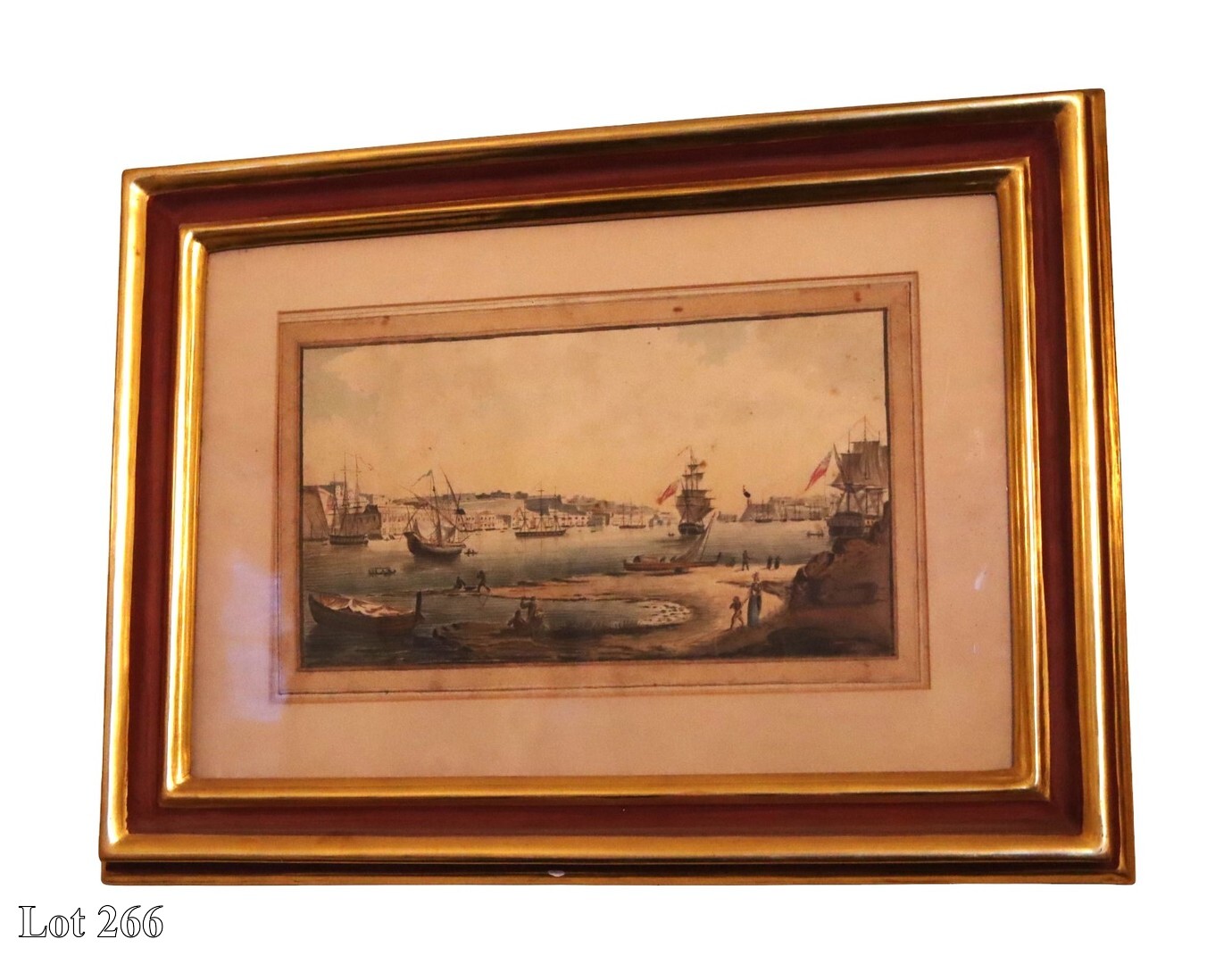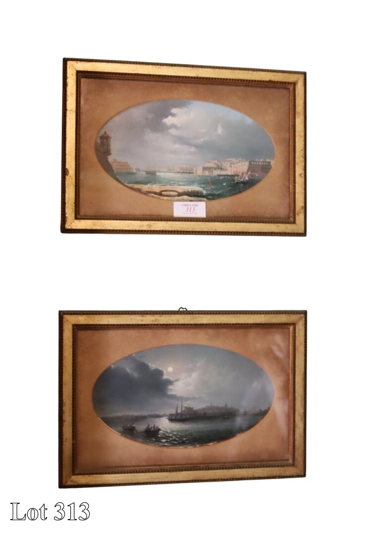 A pair of 19th Century, Views of Galleys of The Order of St John in Marsamxetto and The Grand Harbour , watercolour. ( Width:81 Height:52 )