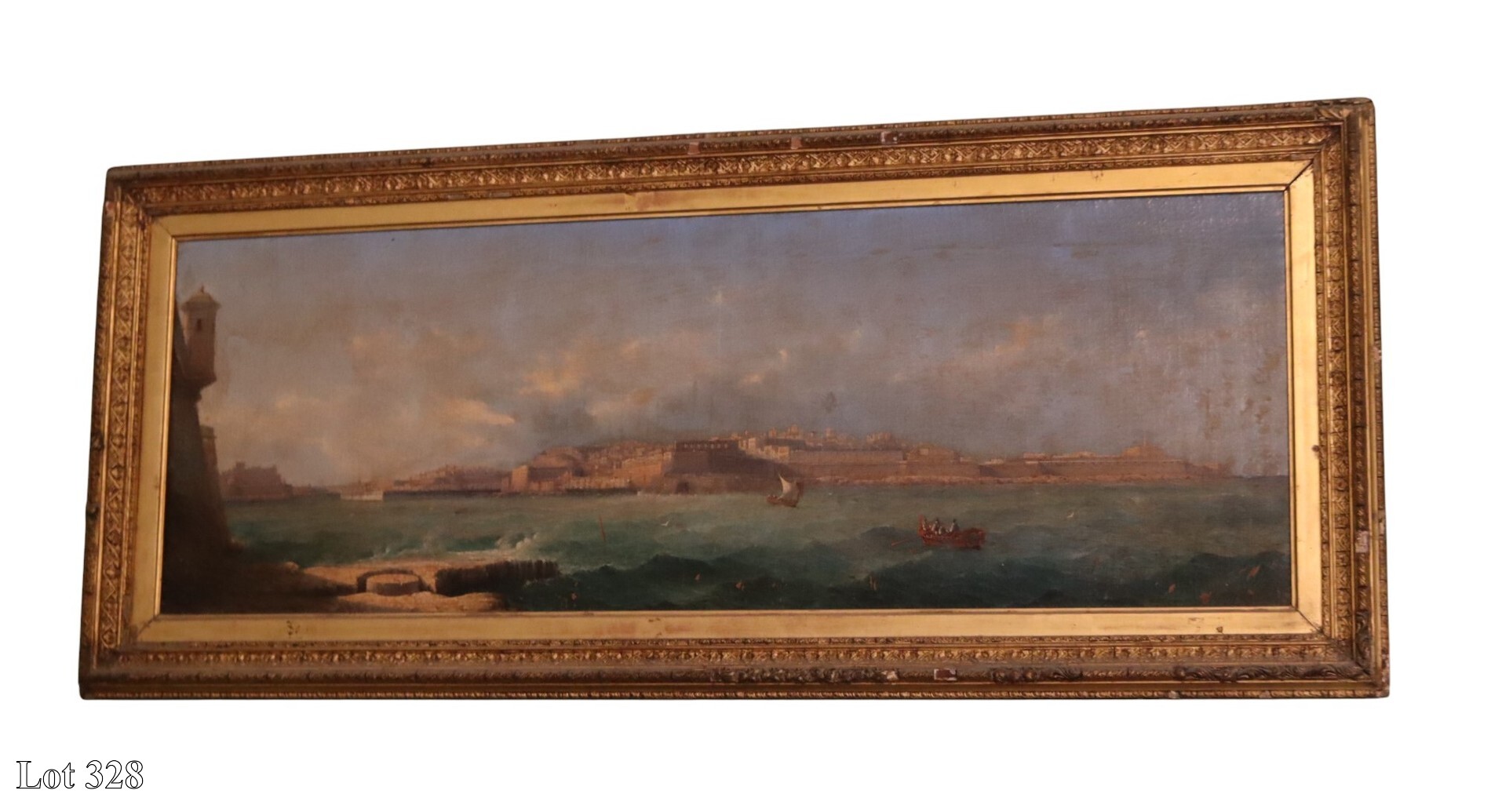 Late 18th Century Maltese School, titled verso il-Redentores, oil on canvas. ( Width:42 Height:50 )