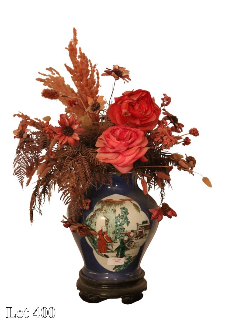 An Oriental vase, on wooden plinth. ( Height:40 )