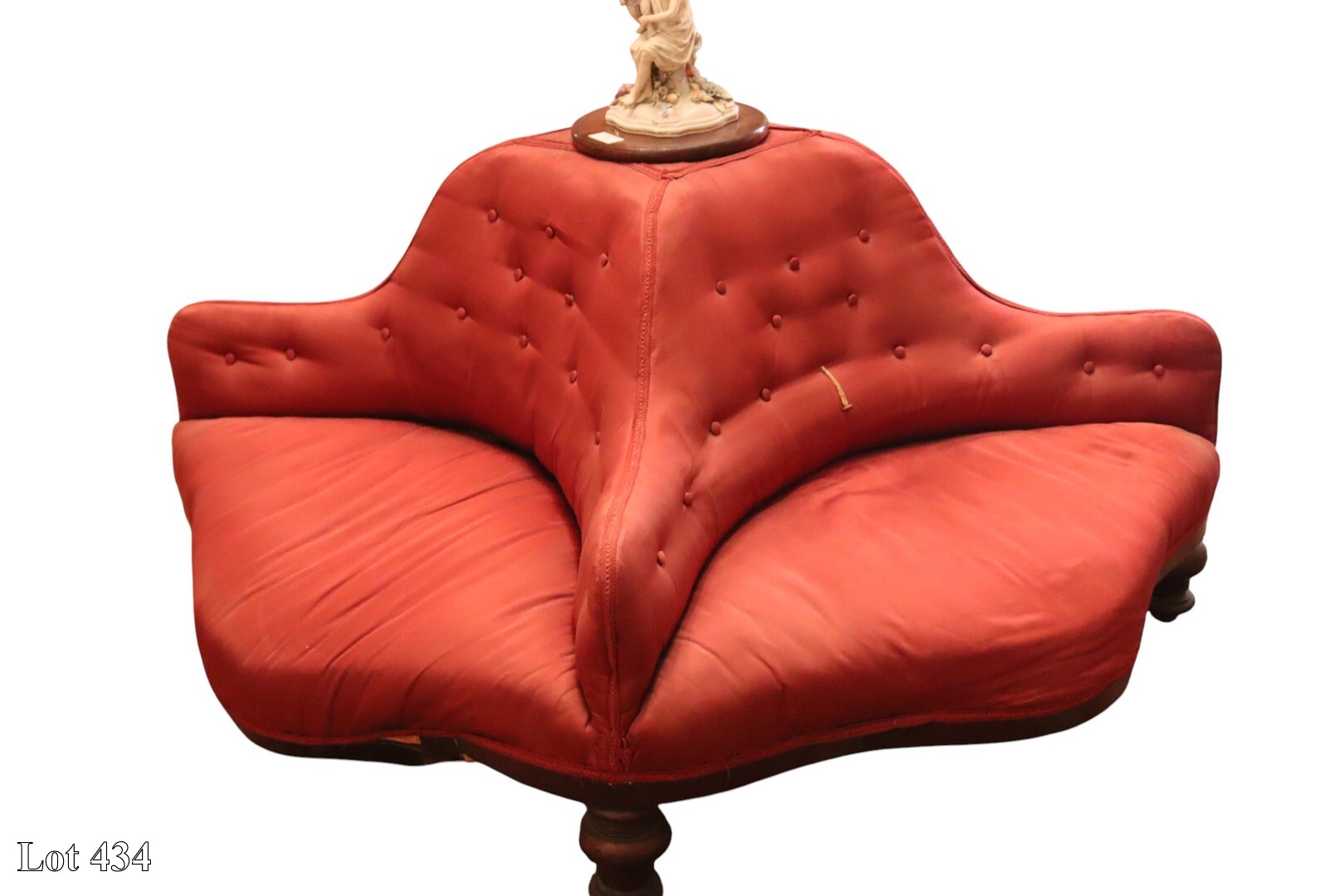 19th Century upholstered circular conversation seat.