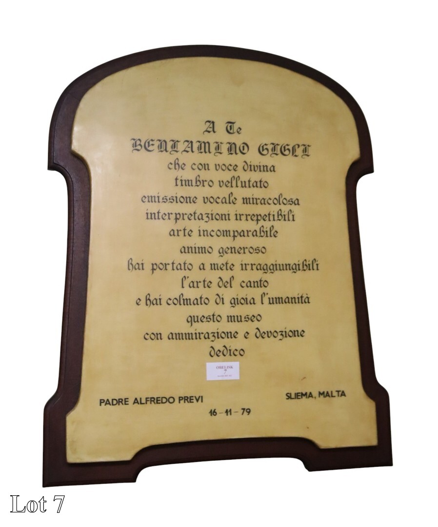 A collection of memorabilia related to Beniamino Gigli, (sixteen frames and a plaque).