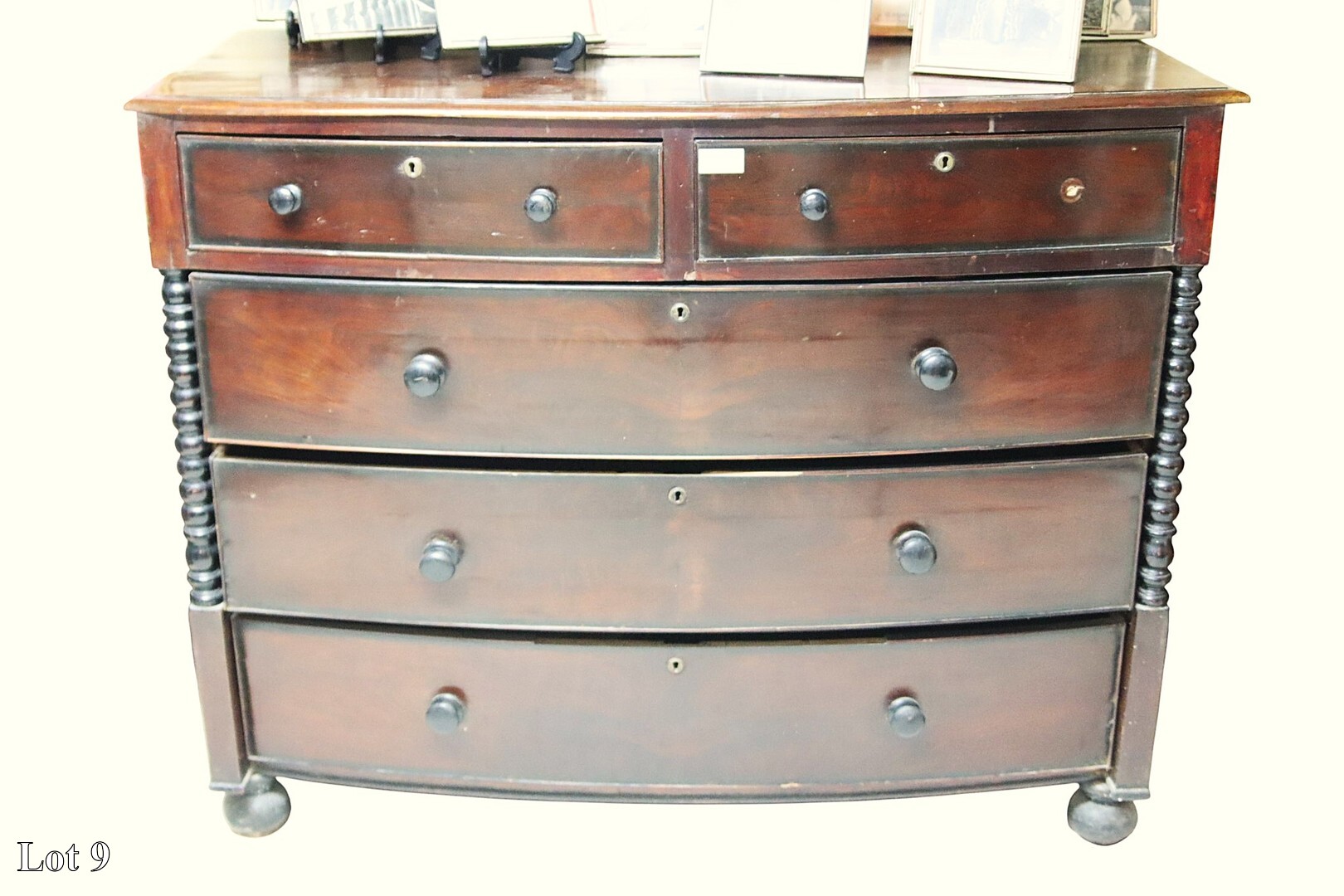 19th Century mahogany bow fronted chest of three long and two short drawers.
