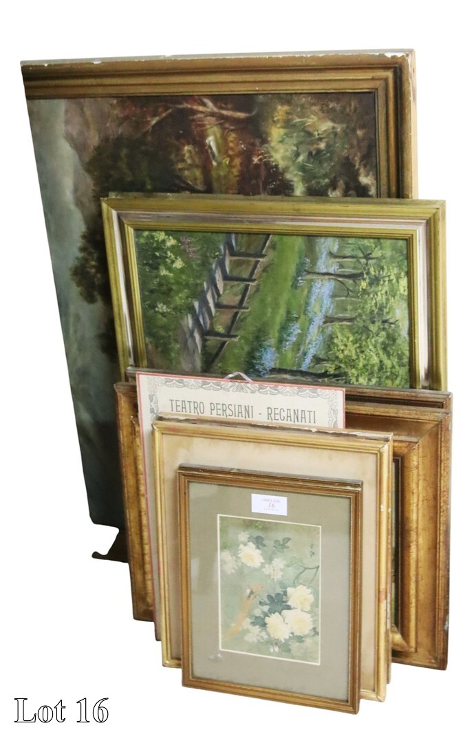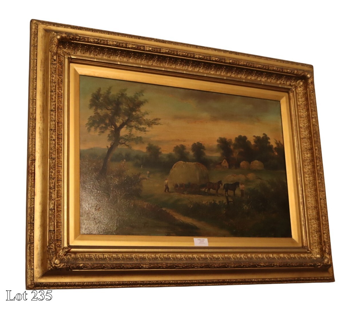 19th Century, English Country Scene, oil on canvas in ornate gilded frame. ( Width:105 Height:80 )