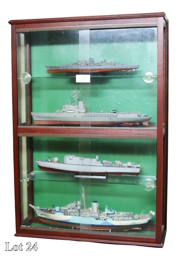 A collection of war planes, with display cabinet.