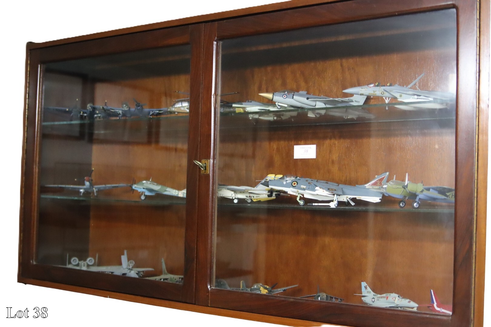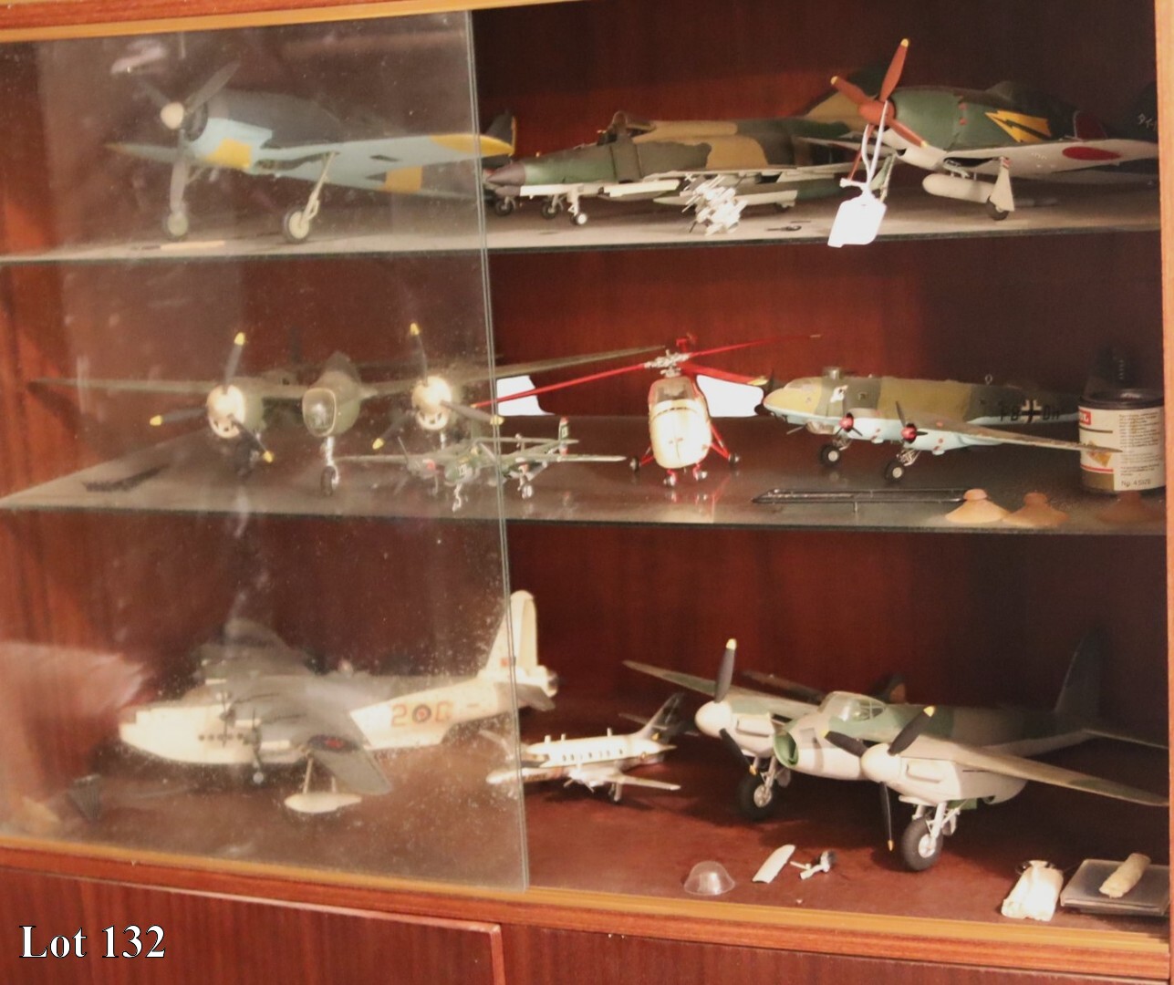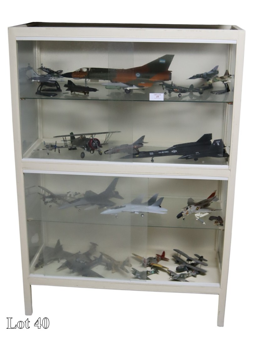 A collection of miscellaneous war planes, with wall mounted two door cabinet.