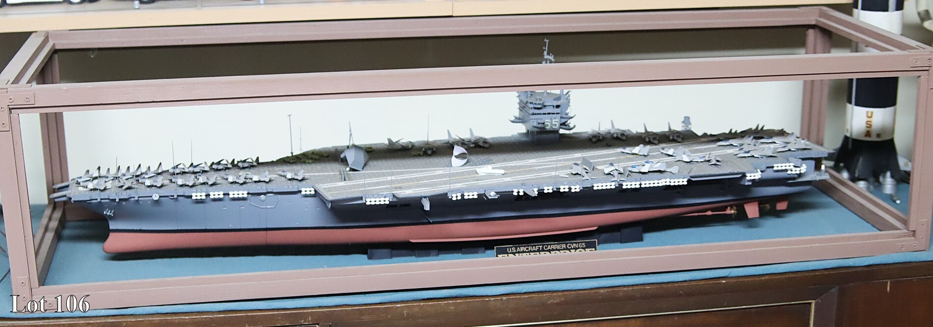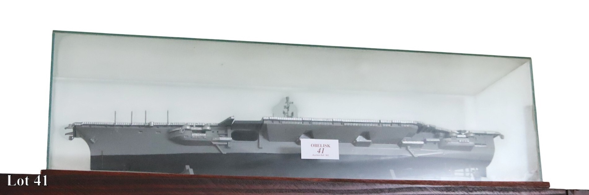 A model of an aircraft carrier.