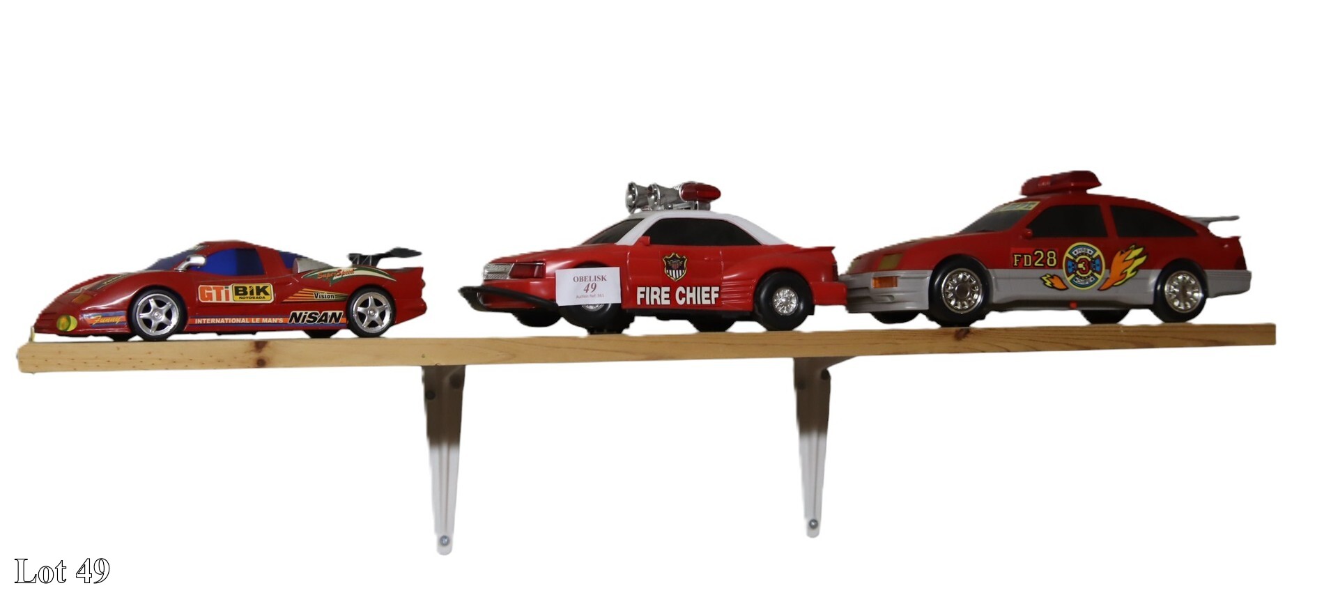 Two fire brigade and a racing car models.