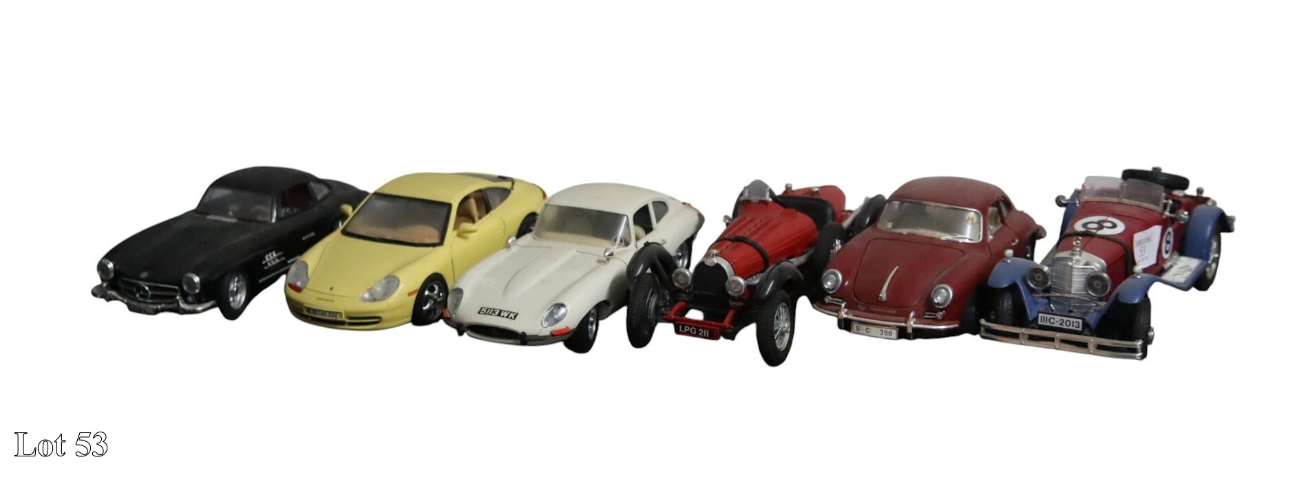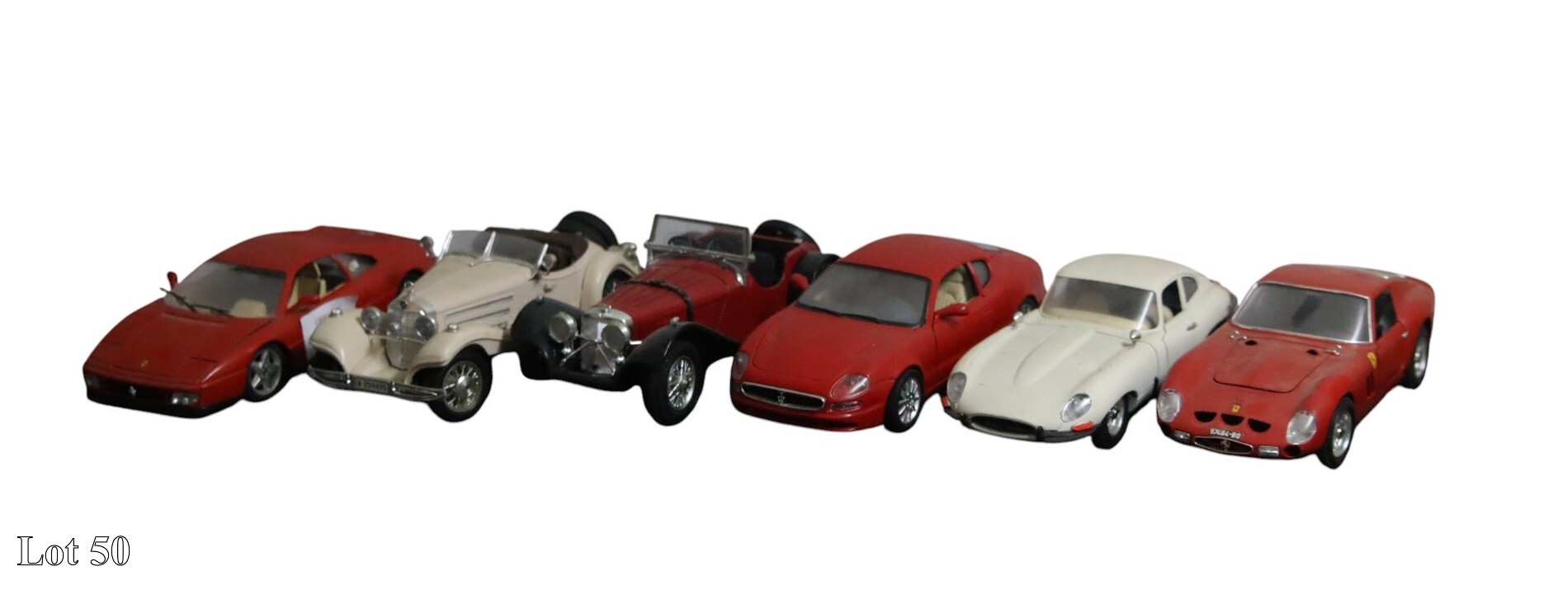 A collection of six Burago car models.