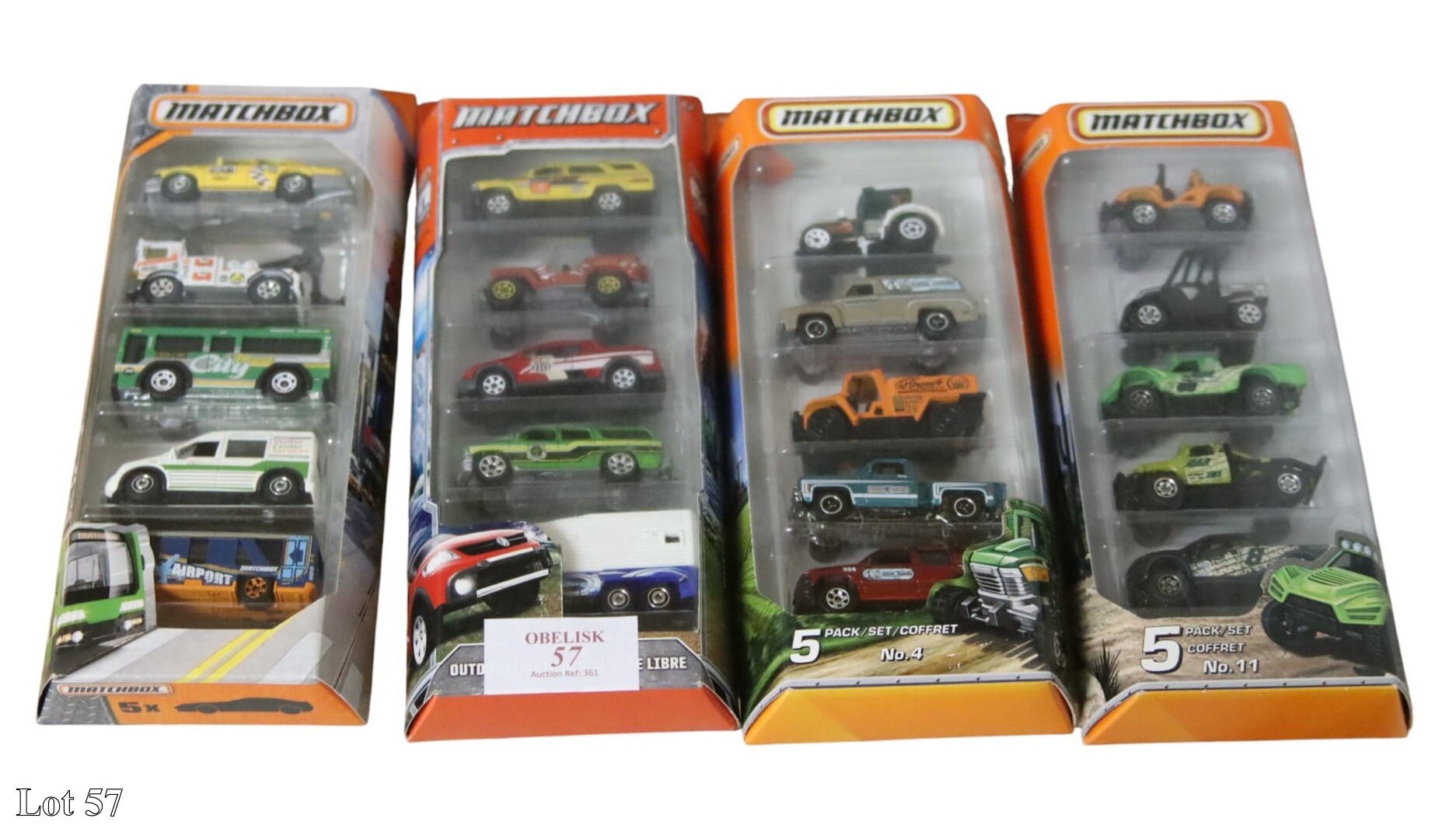 Four Matchbox packs, with car models.