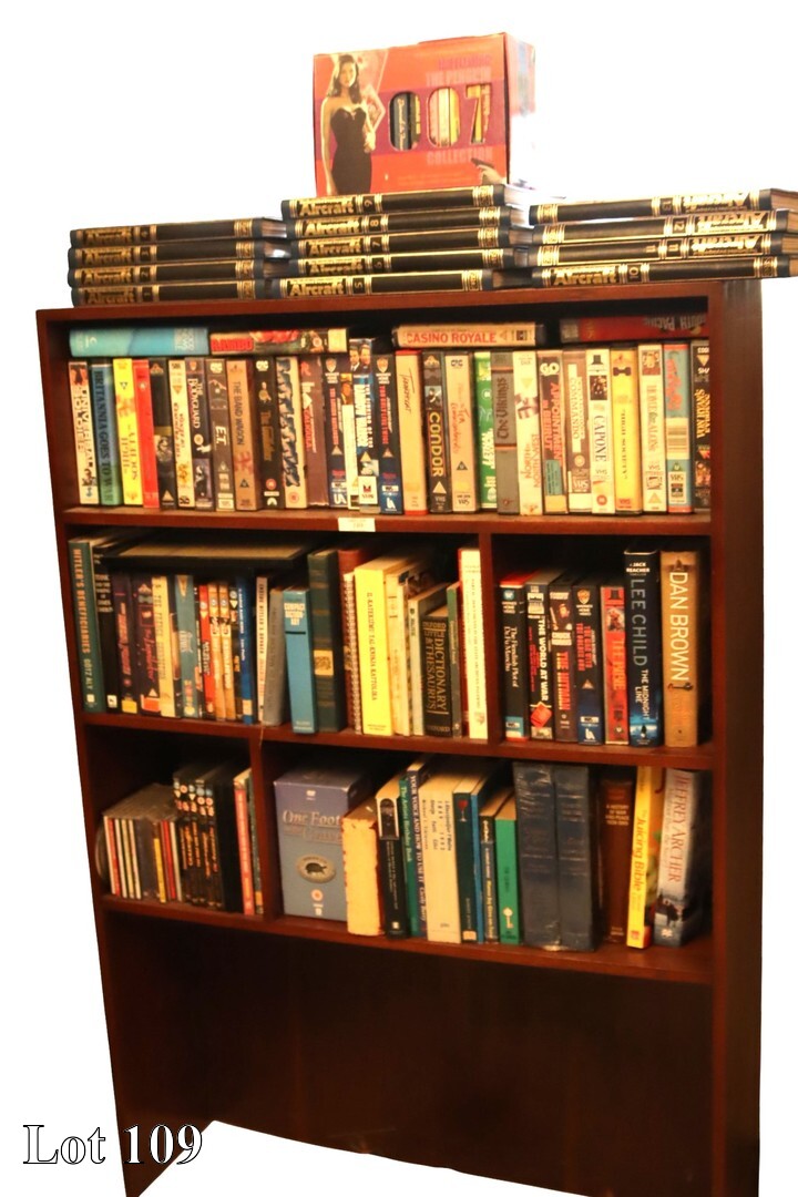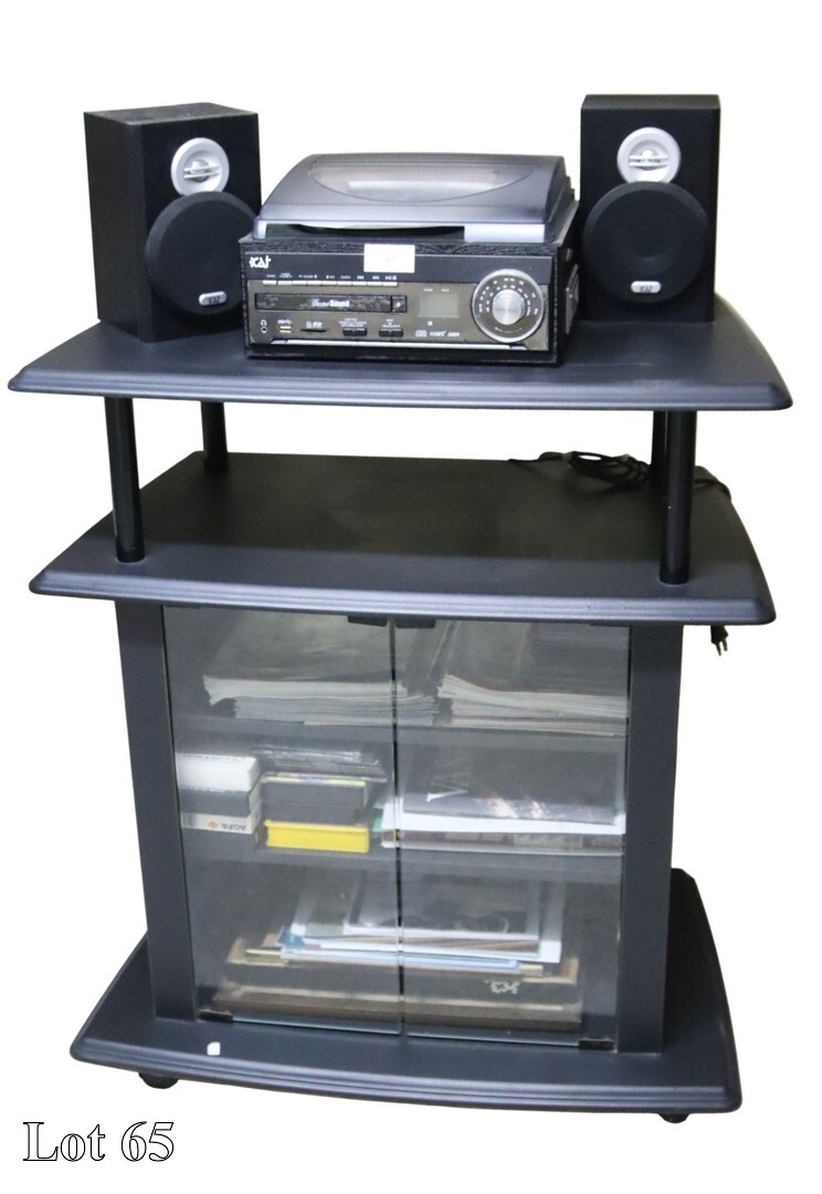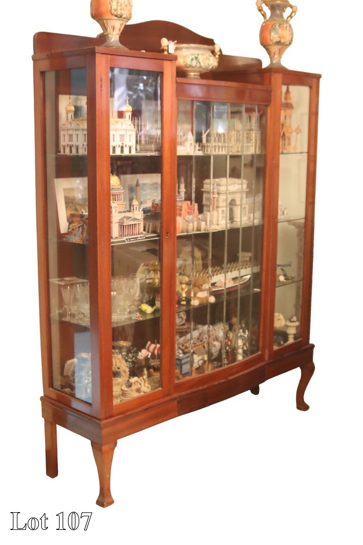 A assorted lot of collectibles, with a three door cabinet.