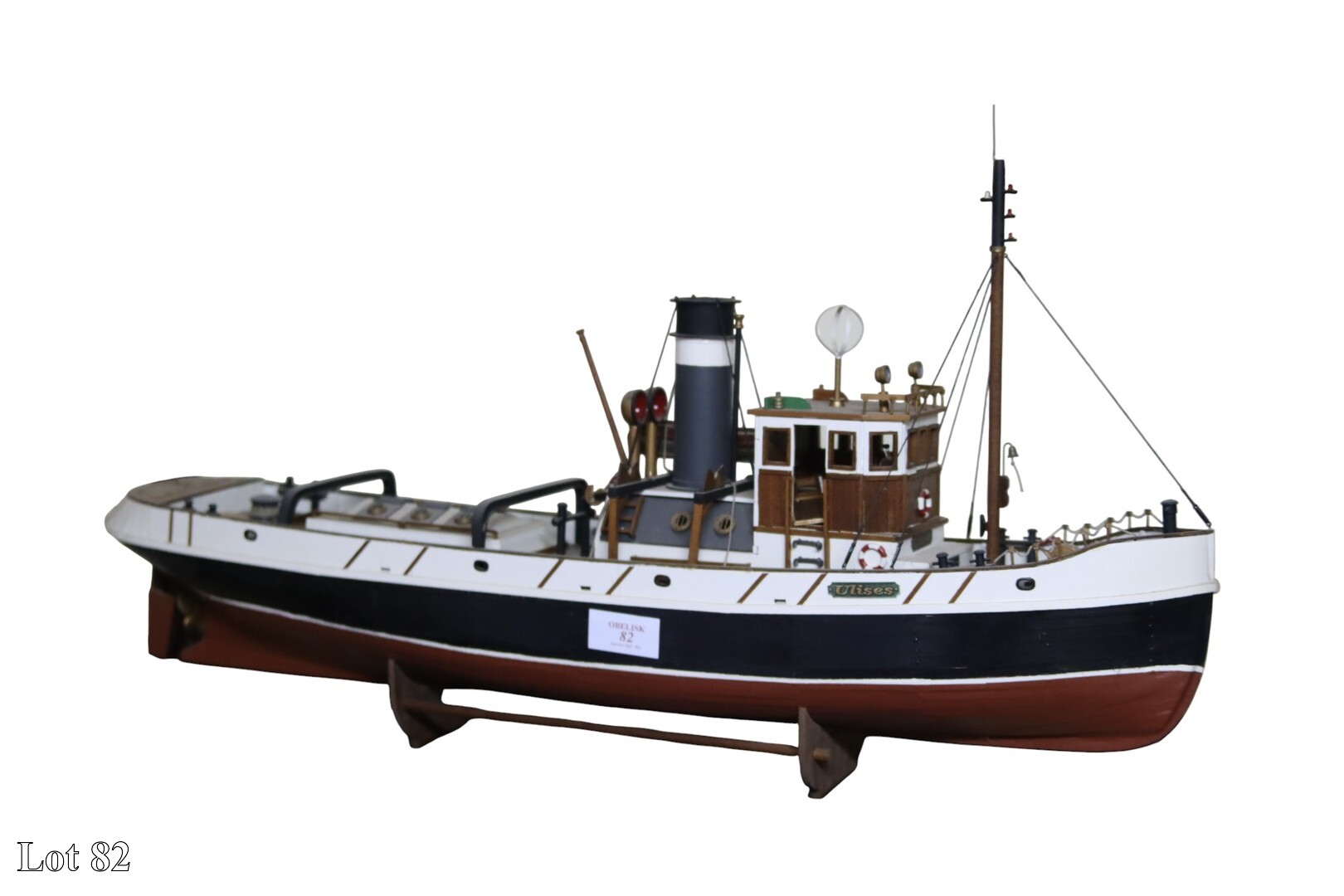 A wooden Billing Boat model of a tug boat.
