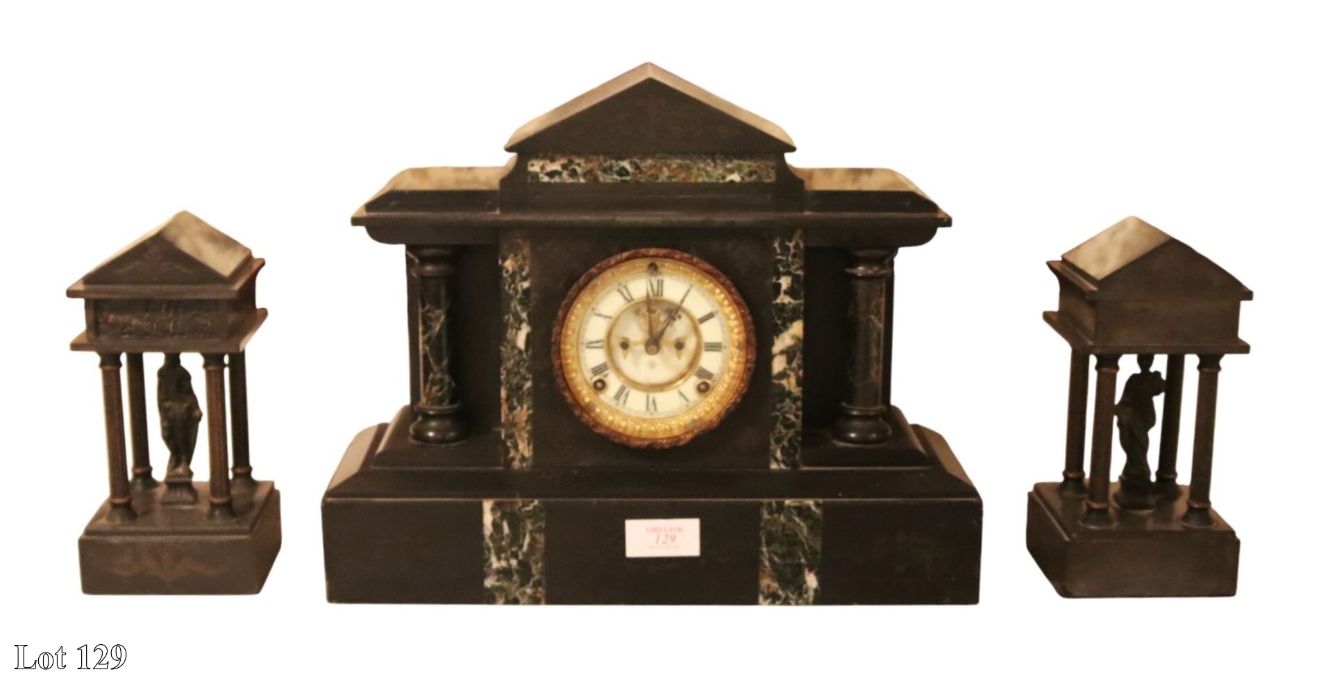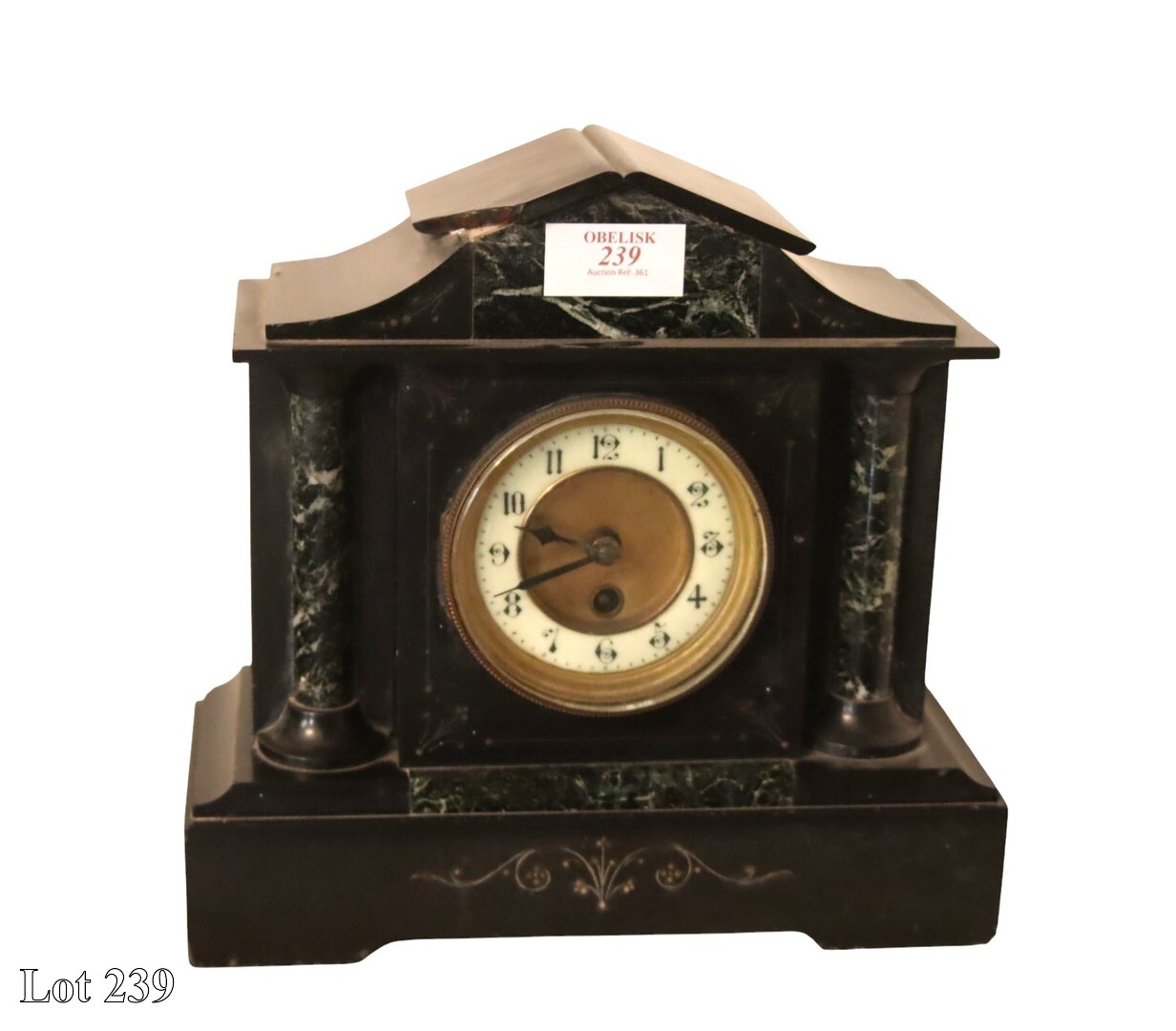 20th Century black marble mantel clock, (damaged). ( Width:30 Height:30 )