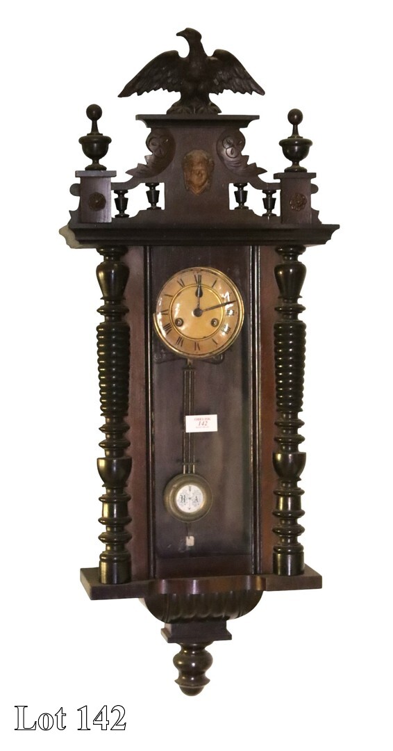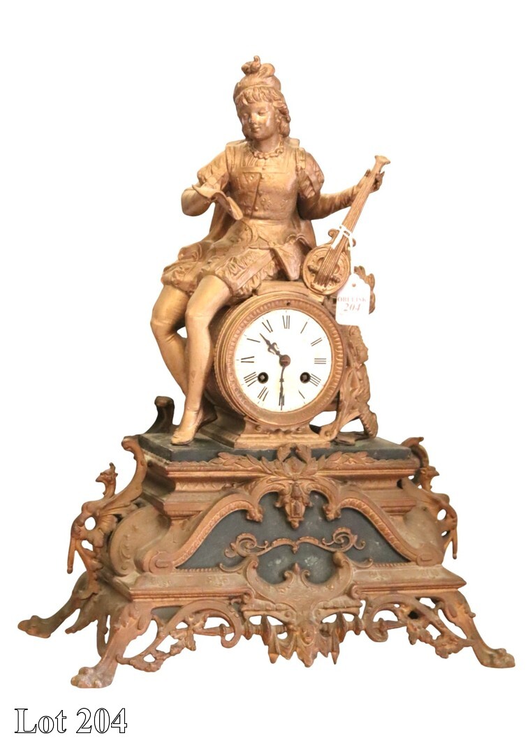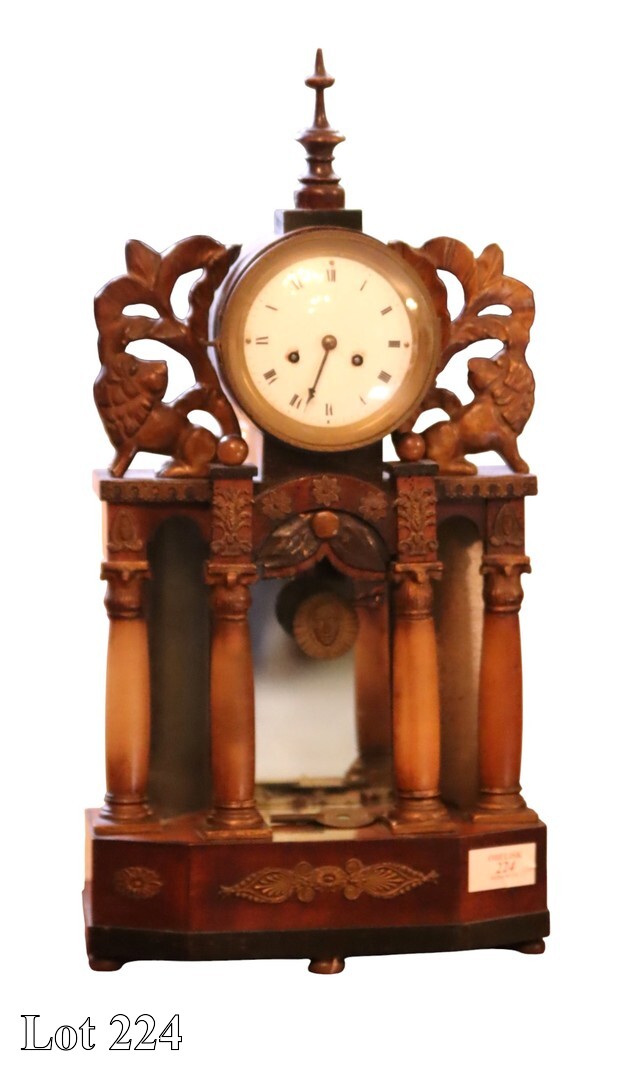 19th Century Empire mantel clock, with Roman Numerals. ( Width:28 Height:57 Depth:12)